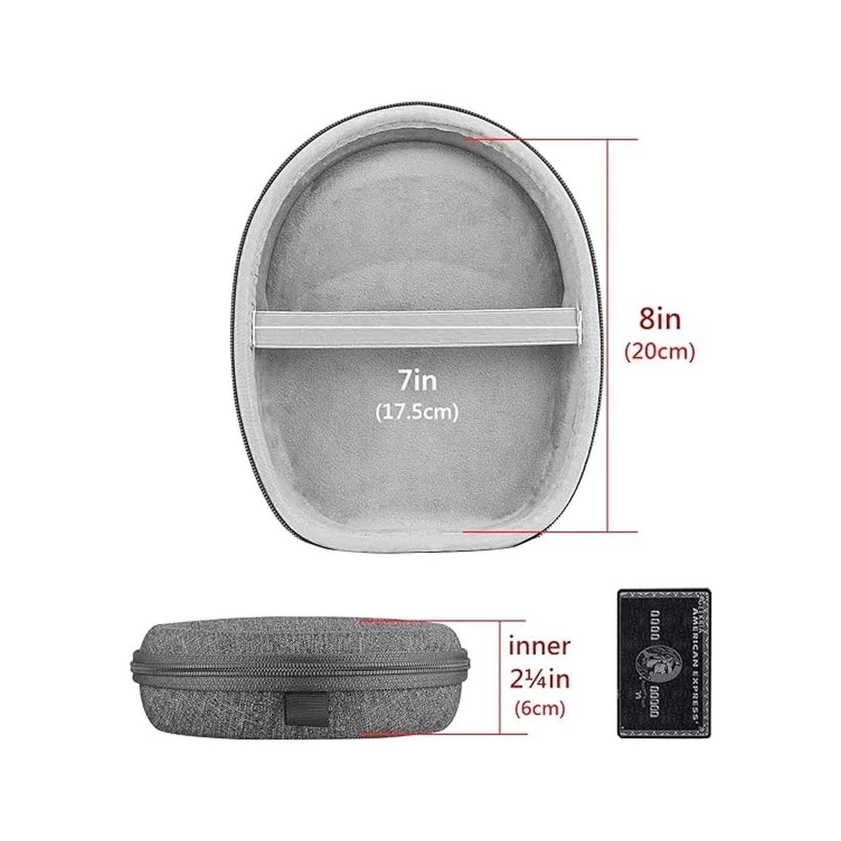 Dimensiones máximas de auriculares compatibles en el interior: 7.9 x 6.9 x 2.4 in. Compatible con muchos auriculares cableados e inalámbricos.