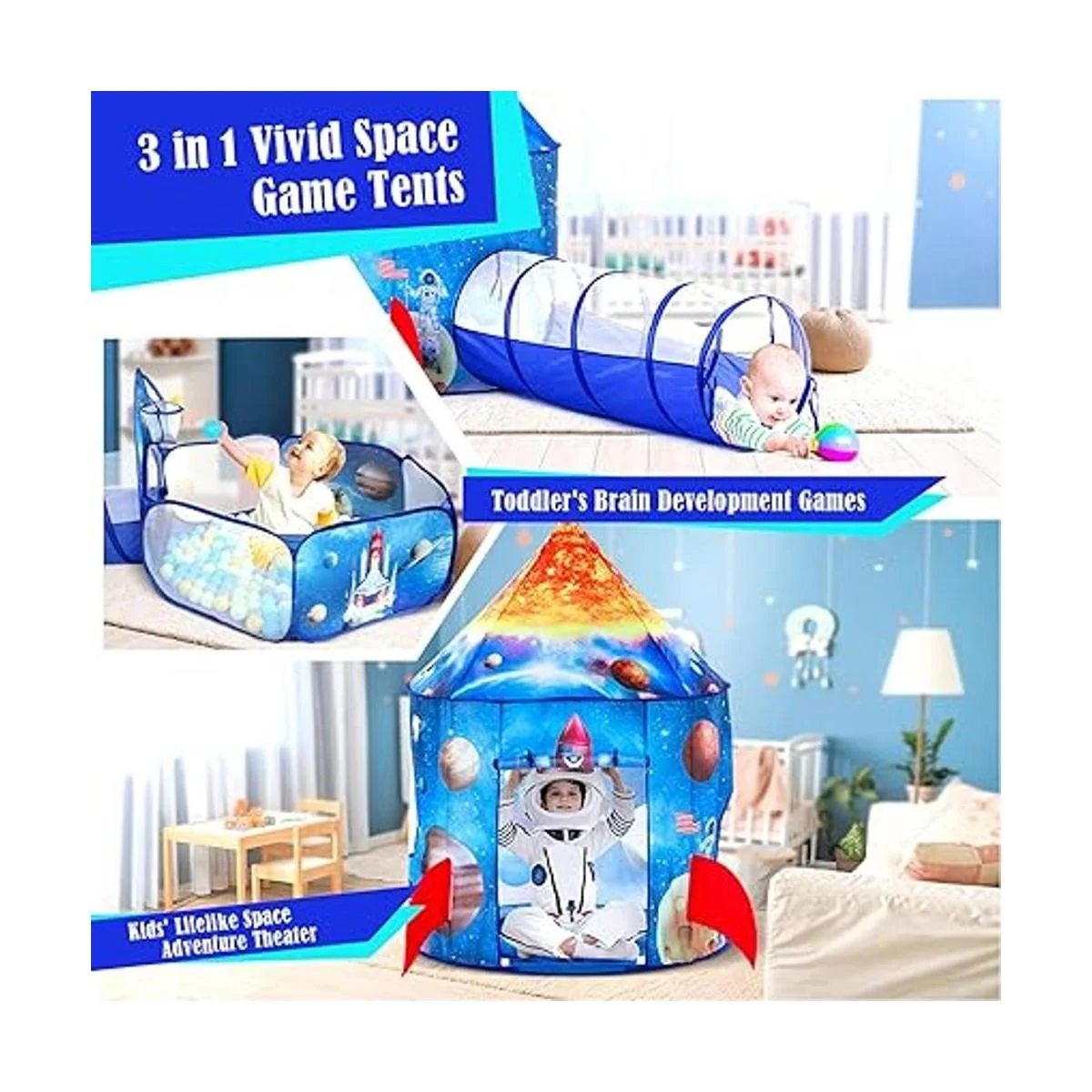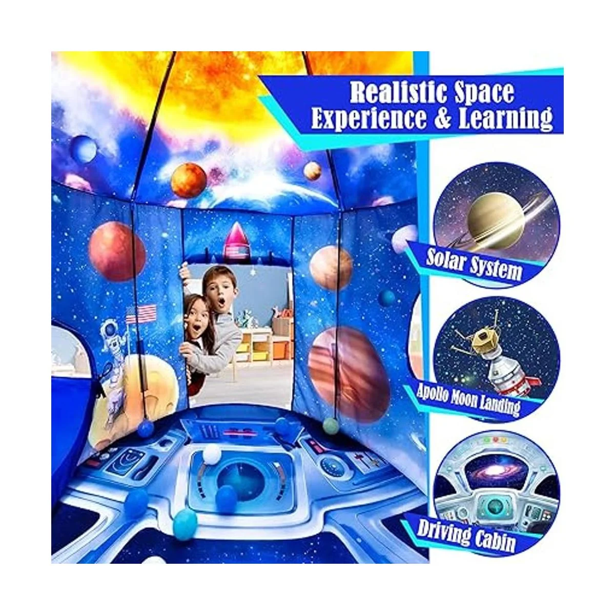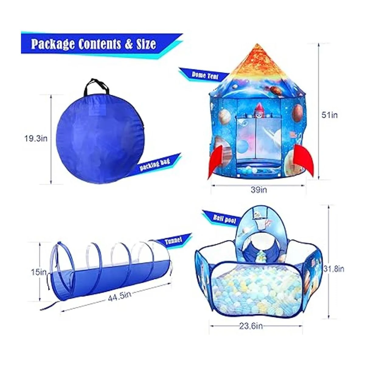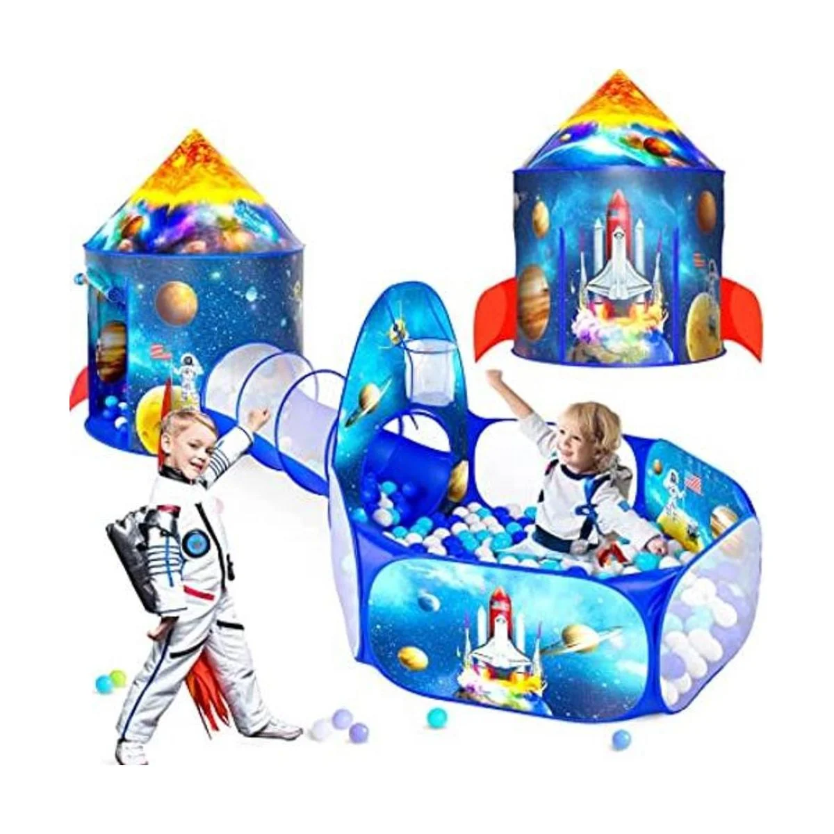 Tablero de una nave espacial: tienes un astronauta en ciernes anhelando la emoción de explorar el espacio Ayuda a tu niño o niña aventurero a explorar el espacio con la casa de juegos portátil para niños de astronauta. La tienda de campaña para niños de 3 piezas incluye una tienda de campaña para niños, un túnel para niños y un pozo de pelotas para bebés. Cuenta con ilustraciones realistas de nave espacial que ayudan a construir la imaginación del niño.