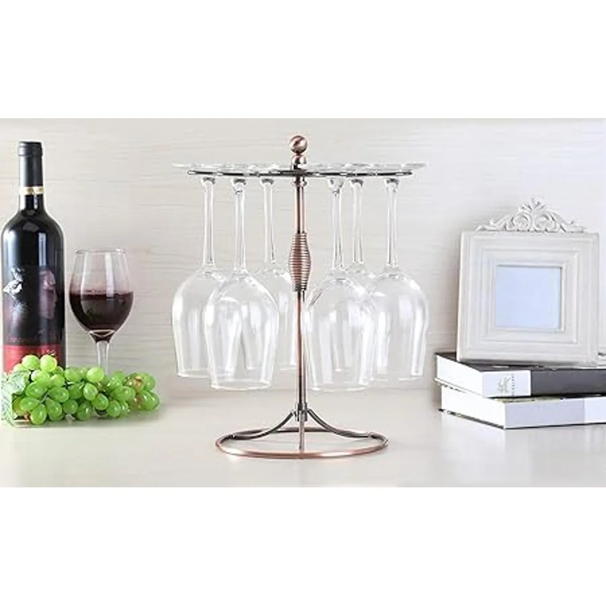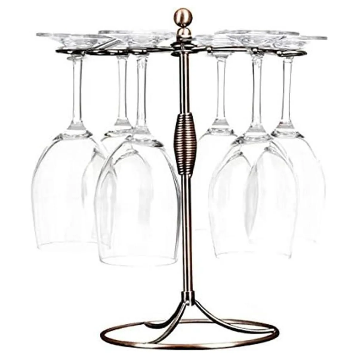 GeLive Soporte para copas de vino de bronce, con 6 ganchos para almacenamiento en casa y bar