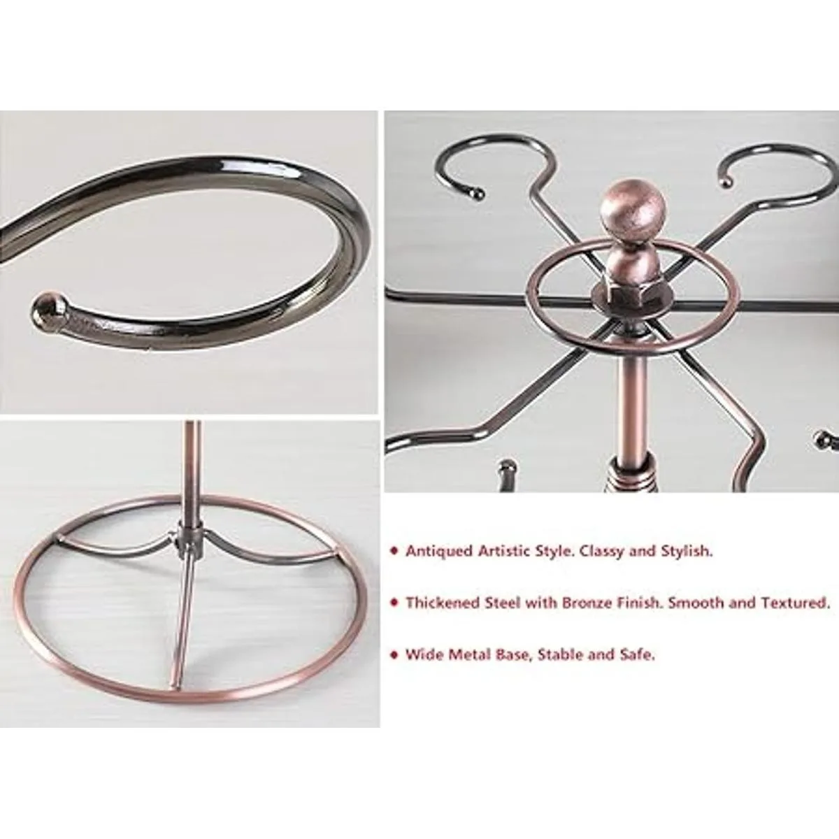 Elegante y elegante soporte para copas de vino. Este soporte para copas de vino es un clásico estilo artístico de bronce envejecido. Se ve elegante y es un complemento perfecto en color y estilo para la decoración de tu hogar. El soporte es maravilloso como una pieza central decorativa en la mesa, mostrador de bar y armario de vino.