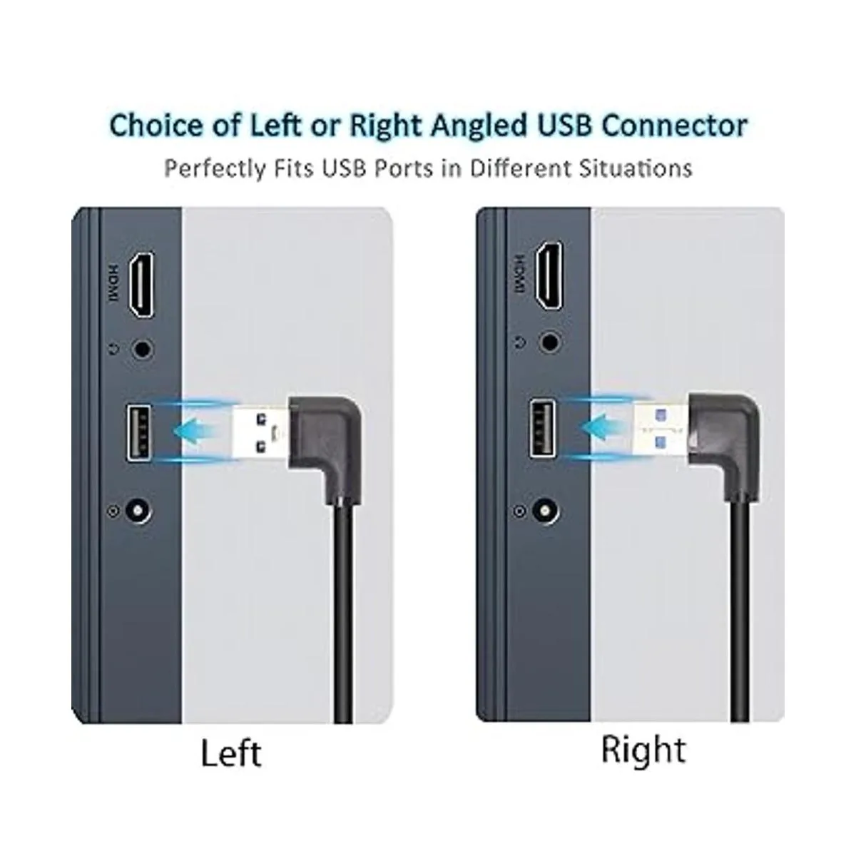 GELRHONR Cable de extensión USB 3.0 de ángulo derecho izquierdo, SuperSpeed USB 3.0 A macho a hembra, cable de datos súper rápido de 5 Gbps, para laptop, TV, disco, ratón, cámara dura, negro, 3.3 pies1 M, negro y izquierdo