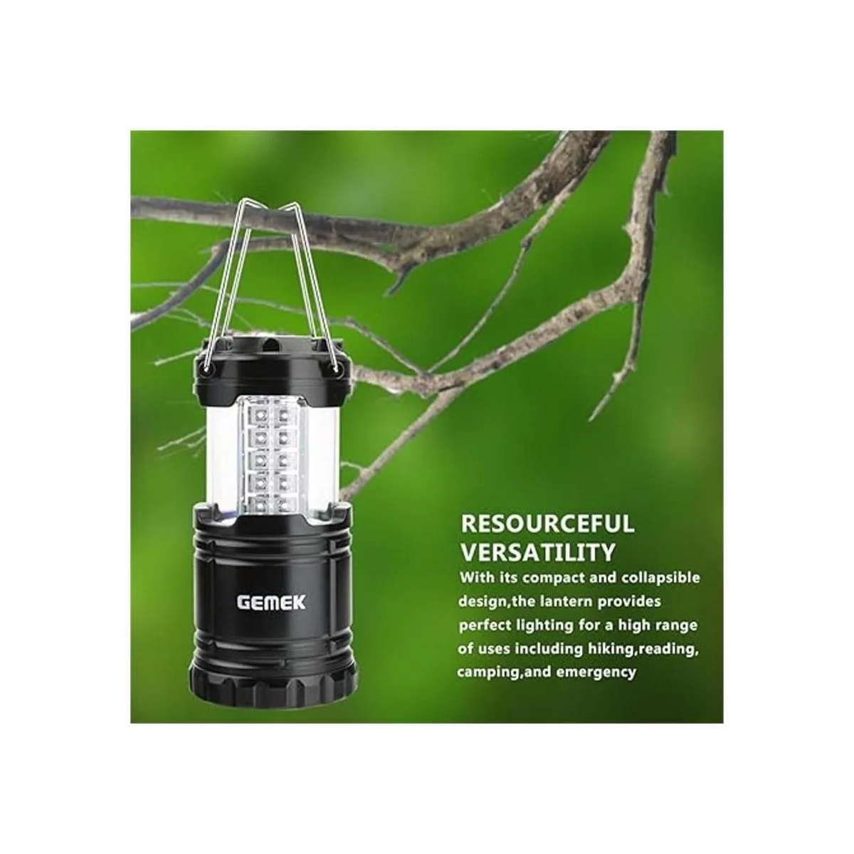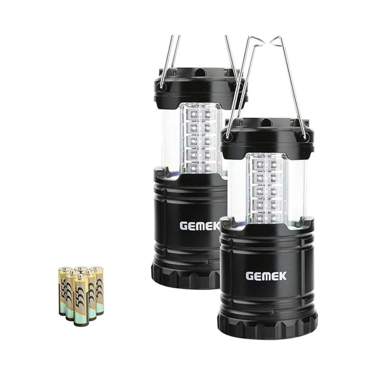 GEMEK Linterna LED para camping, kit de supervivencia para huracán, emergencia, tormenta, interrupciones, linterna portátil al aire libre, 6 pilas AA incluidas negro, plegable