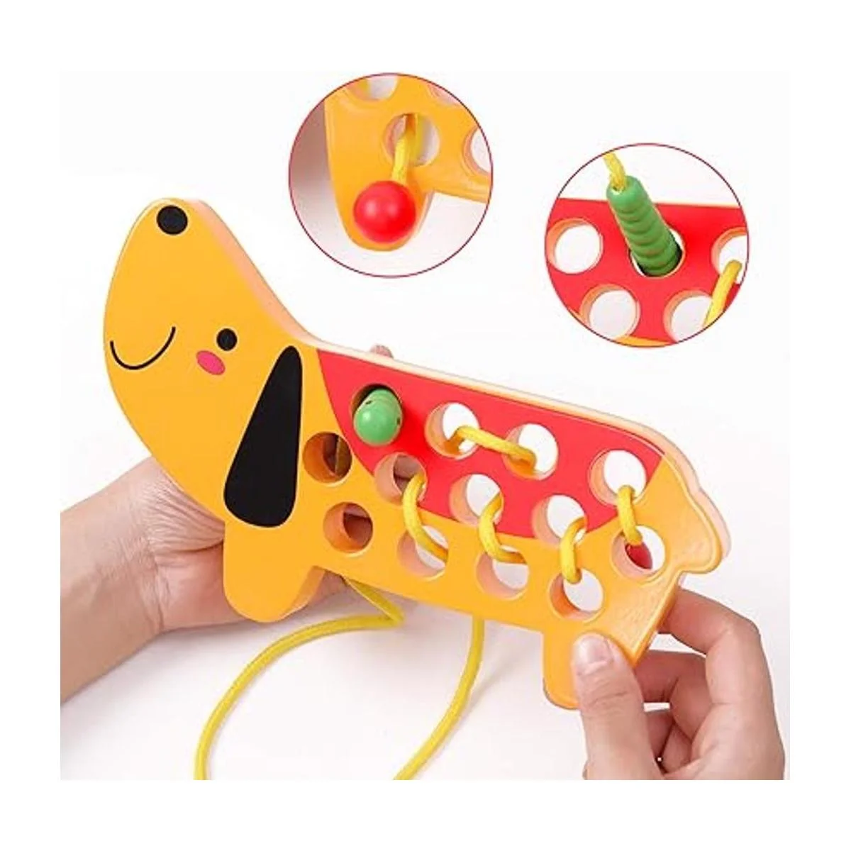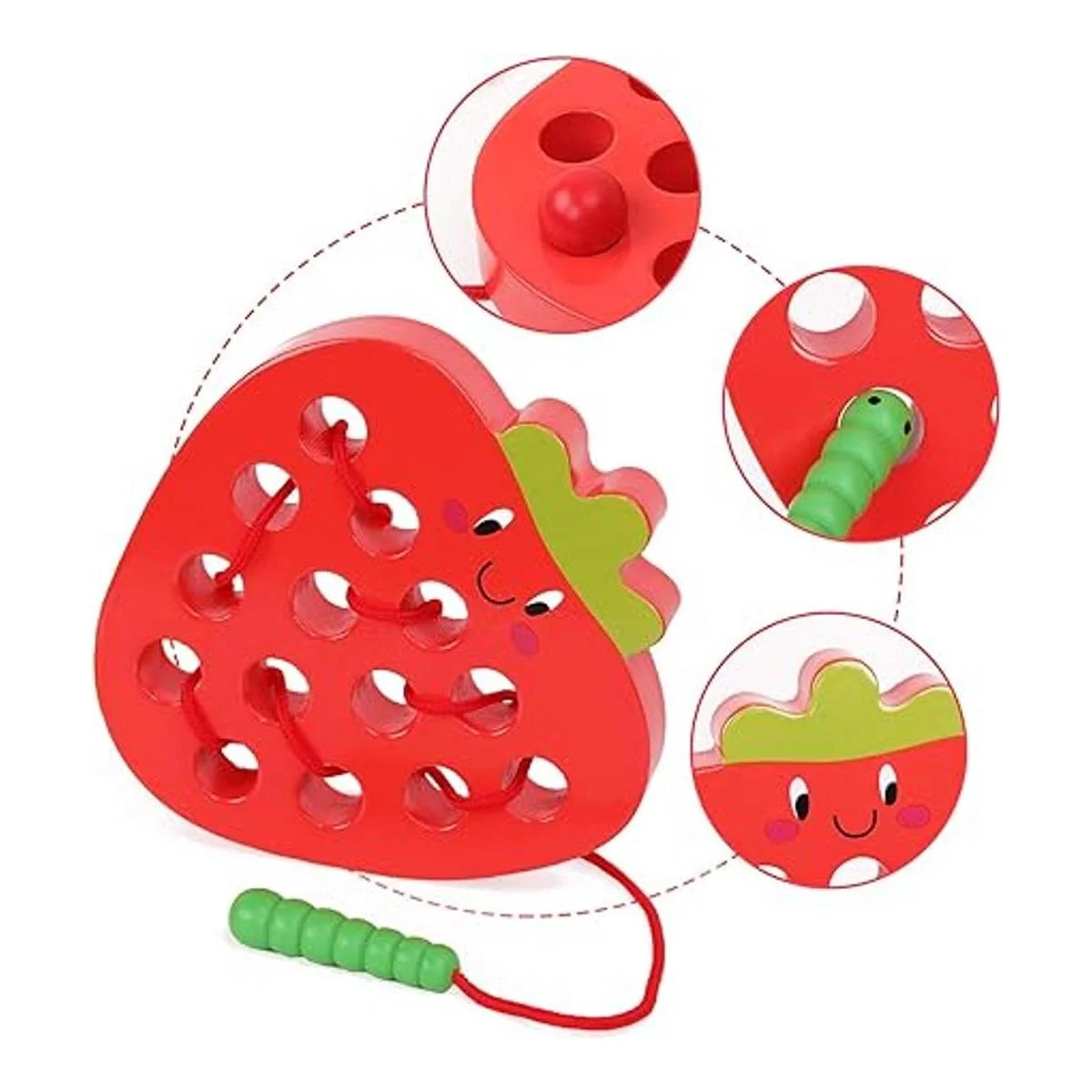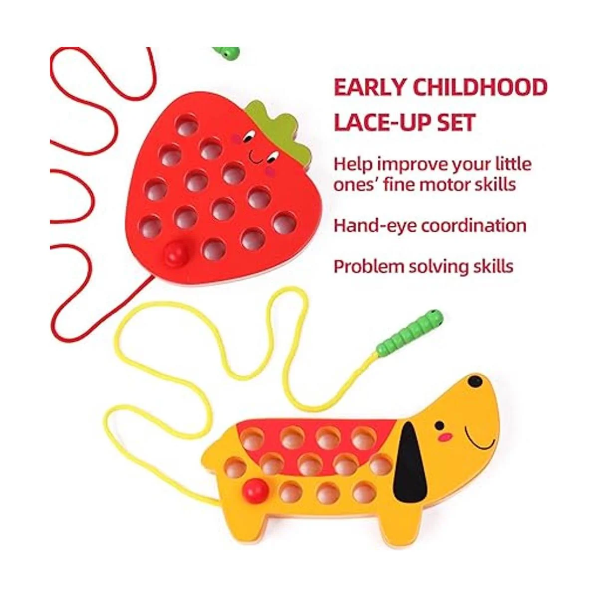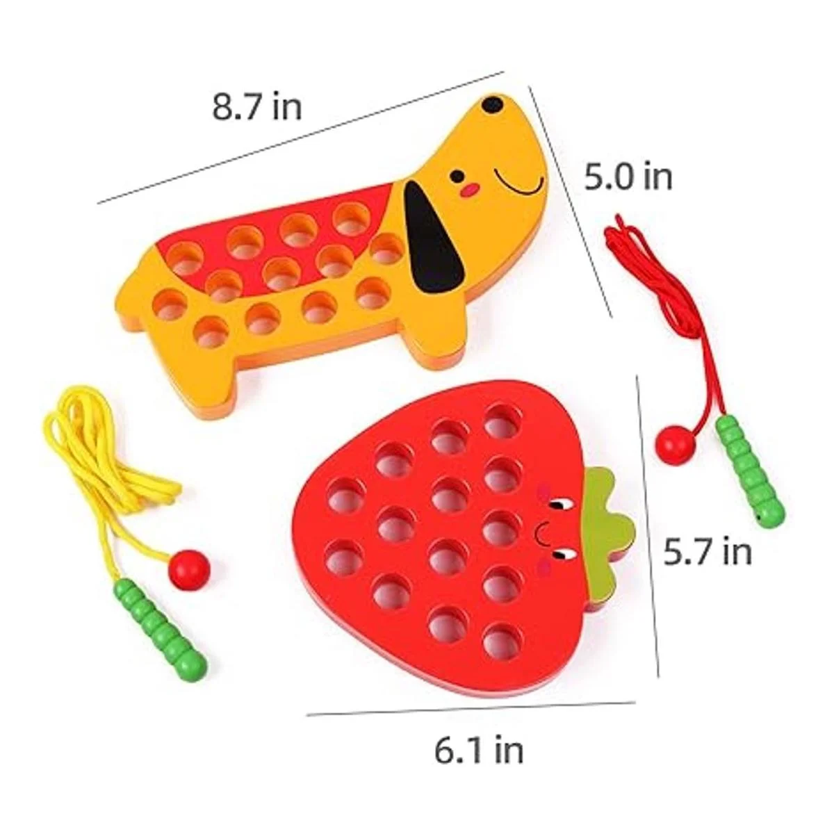 GEMEM Juguetes de enhebrado de madera para juguetes de habilidad motriz fina para 3 años educativos y de aprendizaje Montessori juguete de viaje para niños pequeños 1 fresa y 1 perro