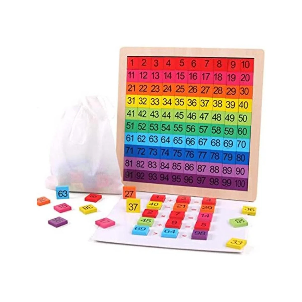 Juguete de aprendizaje de matemáticas: rompecabezas de números 1 a 100 es perfecto para introducir números básicos y operaciones matemáticas básicas a tu pequeño a través del juego. Este rompecabezas introduce el conteo y la aritmética utilizando piezas de rompecabezas de madera de colores brillantes que incluyen números y tarjetas