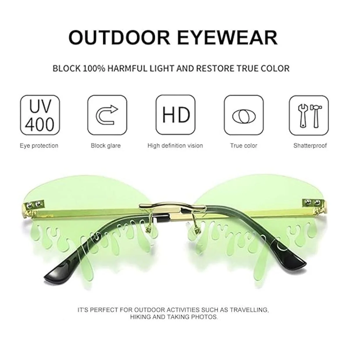 El accesorio especial es una buena opción para festivales, fiestas, raves, regalos, colección y accesorios diarios. Recibirás más cumplidos cuando uses los magníficos lentes. También es perfecto para actividades al aire libre como viajes, senderismo y tomar fotos.