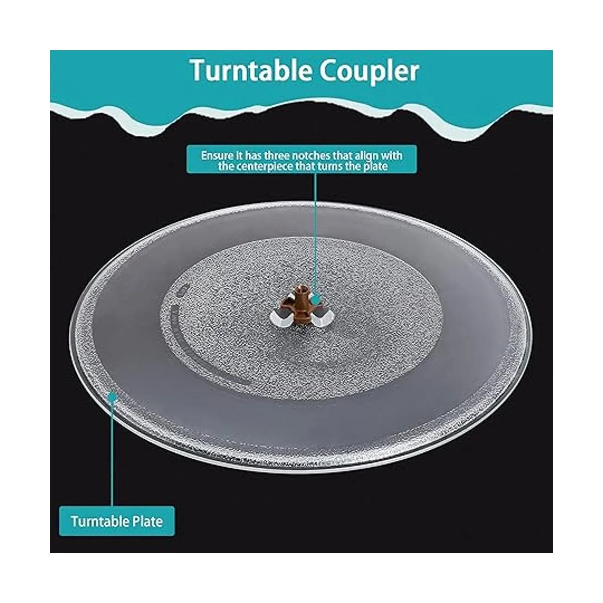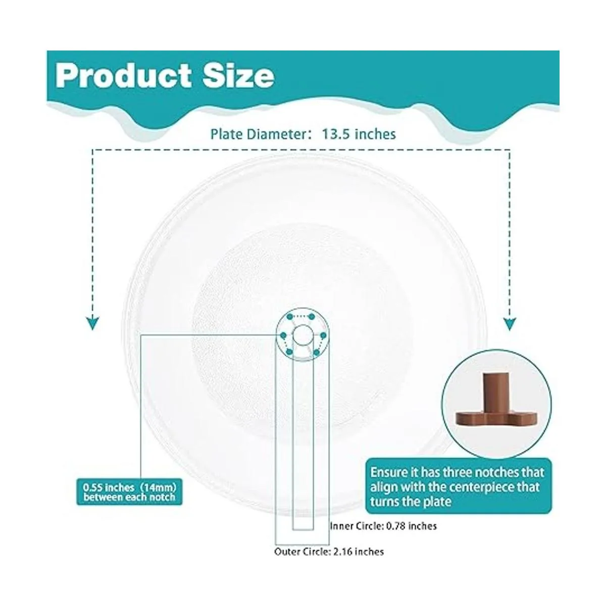 Garantiza un ajuste adecuado: 1 Comprueba tu acoplador de buje centro de mesa que gira la placa del microondas y asegúrate de que tiene tres muescas, estas deben alinearse con el centro de la placa. 2 Mide el interior del microondas para asegurarte de que una bandeja giratoria de microondas de 13.5 pulgadas de diámetro se ajuste