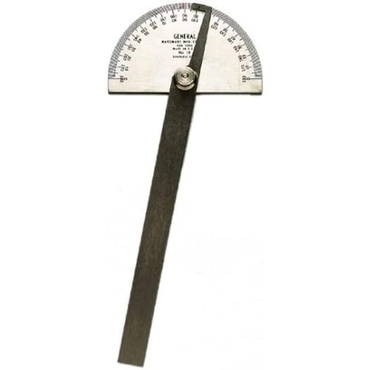 General Tools 18 transportador de ángulo de acero inoxidable de cabeza redonda, 0 a 180 grados, brazo de 6 pulgadas