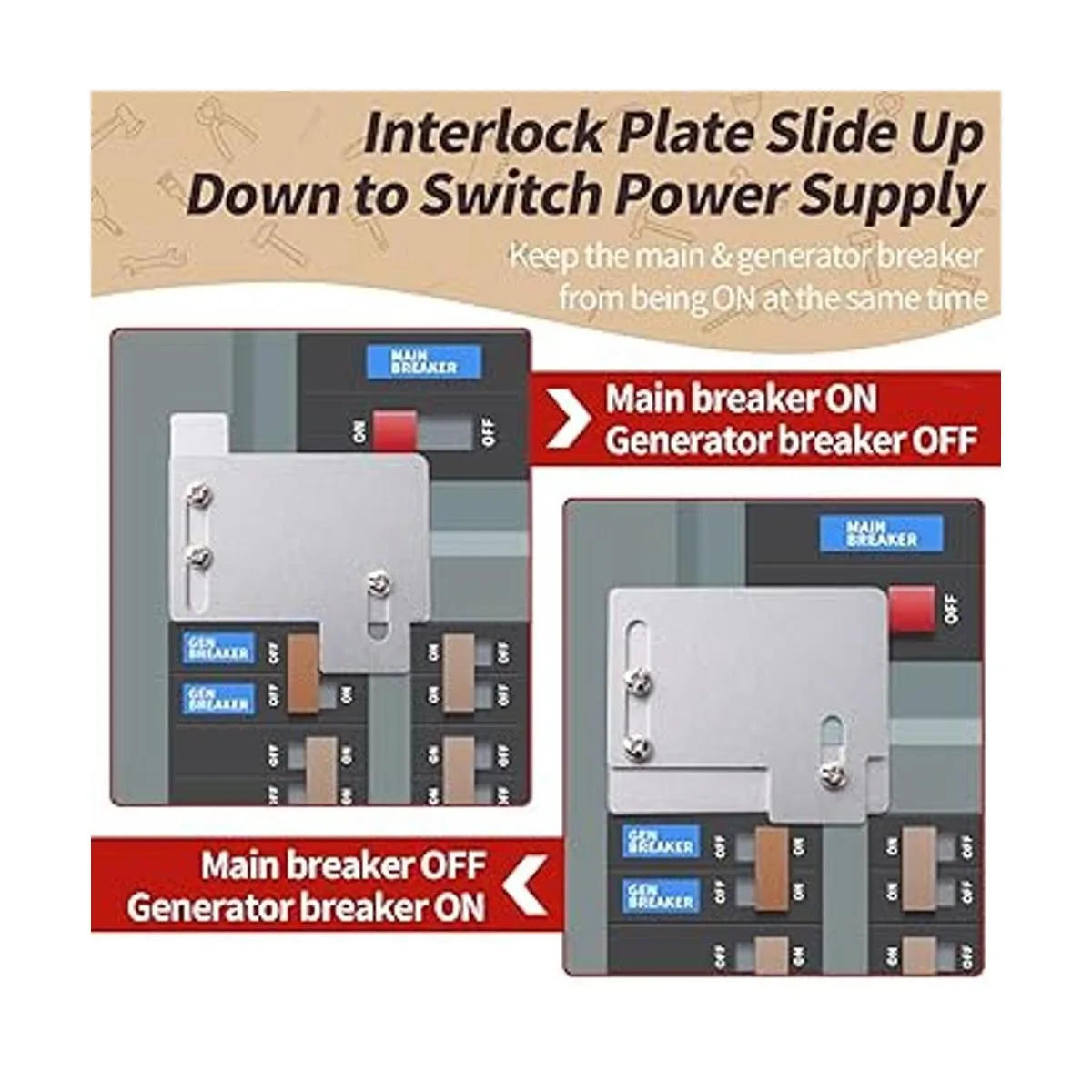 Items Included Warranty Recommend to operate by licensed electricians. Easy to install, Package including everything you need. 2 Interlock plate, 3 Step screws and nuts, 1 Drill Bit, 1 Generator StartUp Procedure Label, 5 Remind Label, 2 Zip Ties, 2Removable Dots Glue 1 Installation instruction. Free risk on lifetime warranty. Pls contact us if the interlock kit do not fit your breaker panel.
