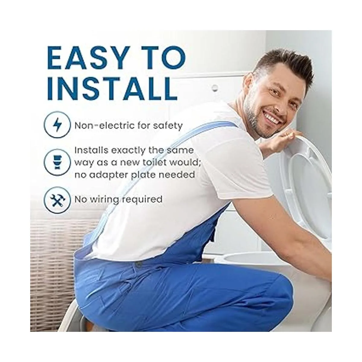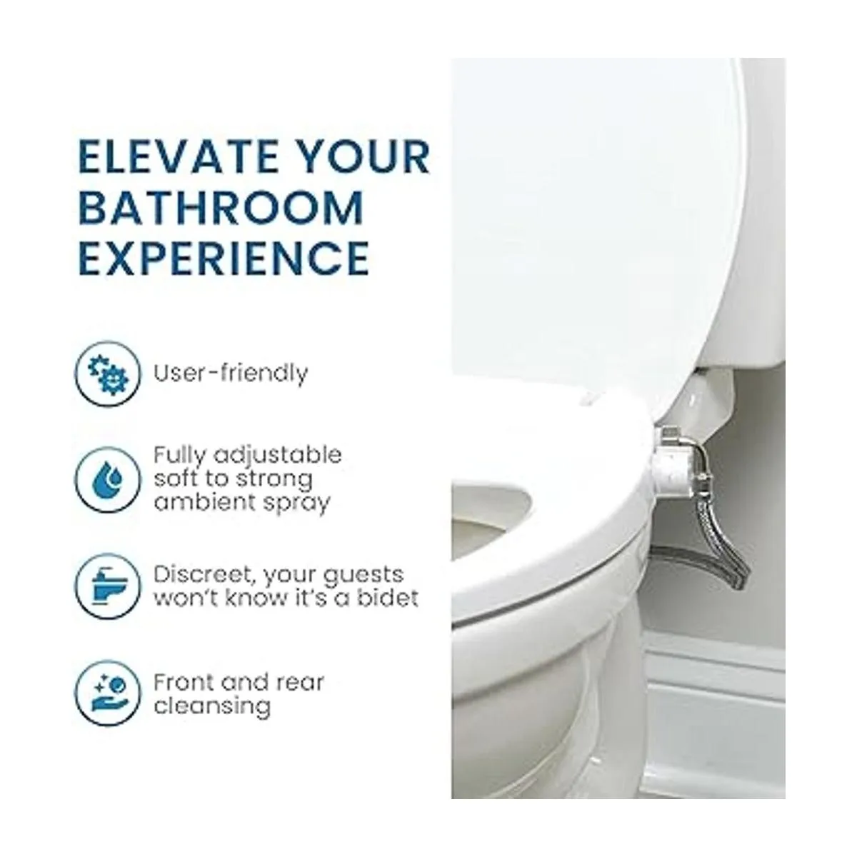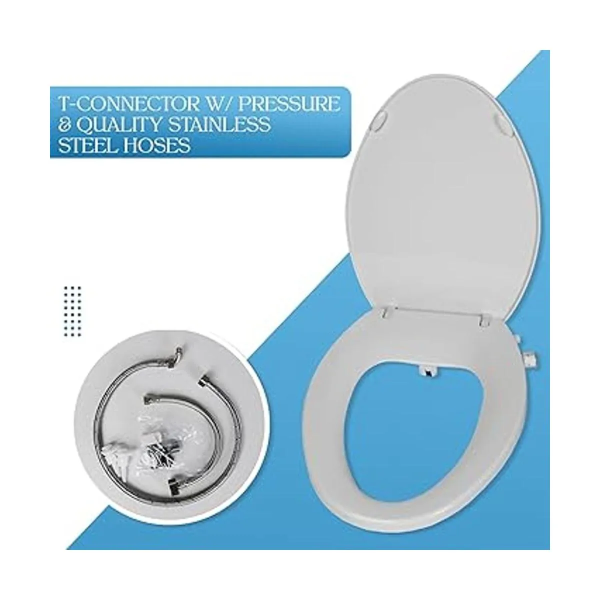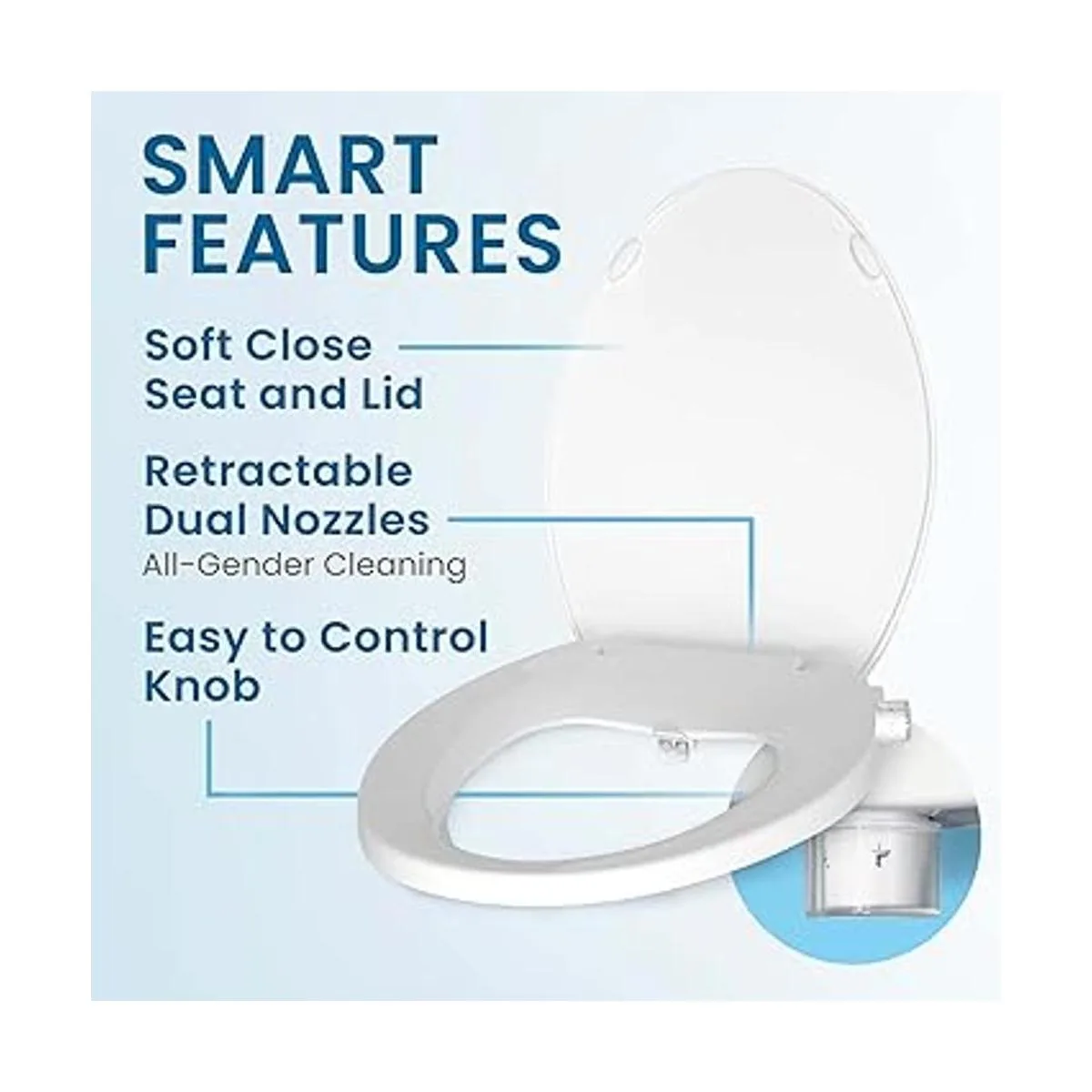 GenieBidet Stealth Asiento alargado para bidé Boquillas dobles autolimpiantes limpieza trasera y femenina, no requiere cableado. Fácil instalación en 20 minutos T híbrido con encendidoapagado incluido