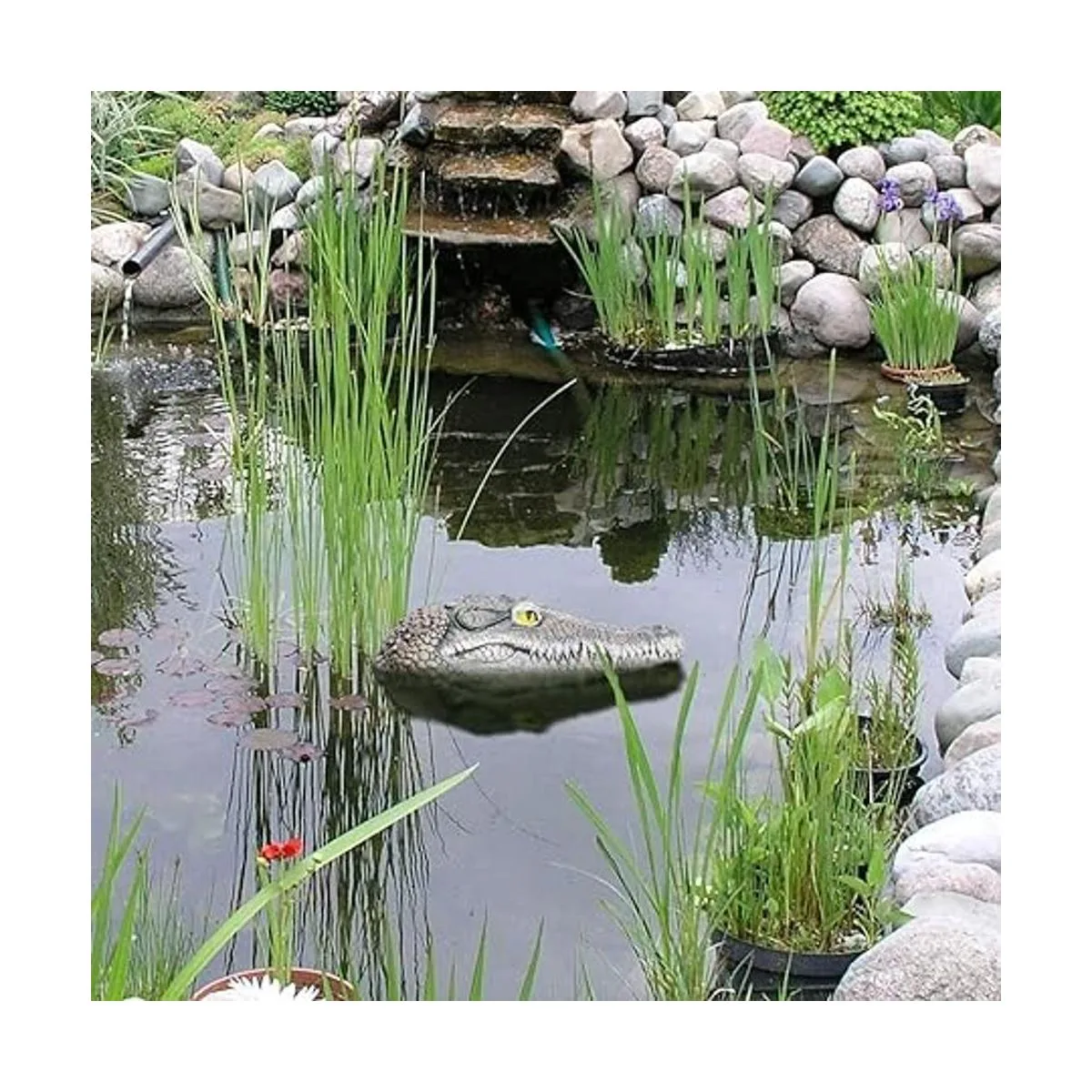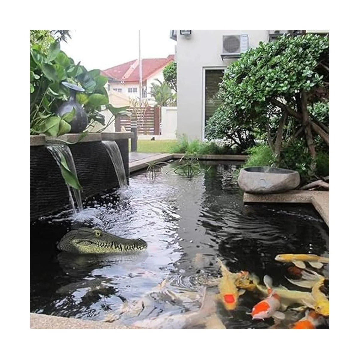 Protector de estanque de jardín: con piel vívida y ojos feroces, la cabeza de cocodrilo no solo puede ser un señuelo de cacahuete, sino también como un protector de estanque para asustar eficazmente pájaros, patos, garzas y mucho más. Mantén a tus peces seguros.