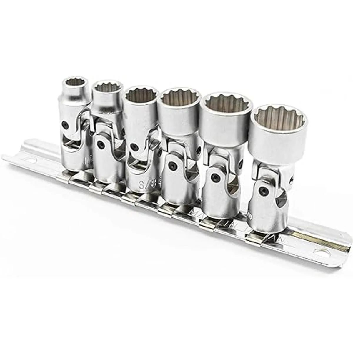 Juego de enchufes universales: el juego de 6 llaves de mano flexibles incluye soporte / riel de enchufe para un fácil almacenamiento y retención.
