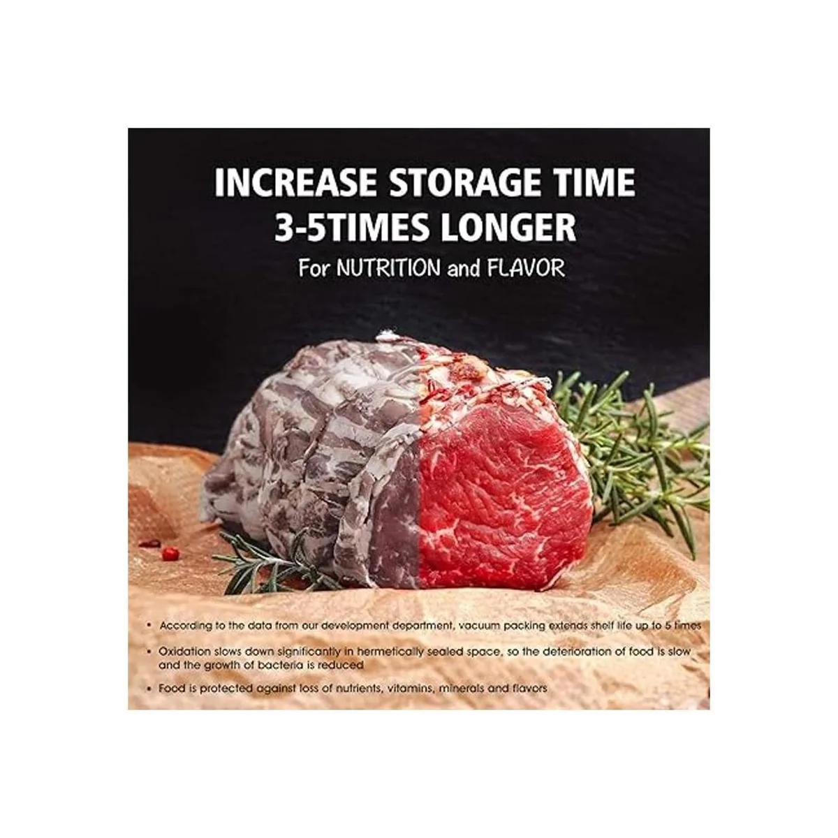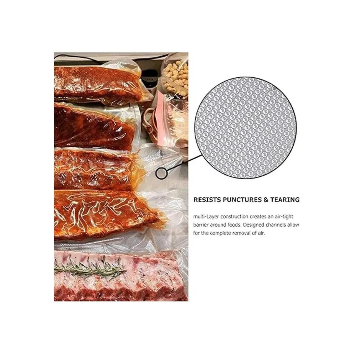 No más quemaduras libres: nuestras bolsas selladoras al vacío resistentes a desgarros con protectores de huesos para evitar perforaciones, manteniendo tu comida fresca sin quemaduras en el congelador o deshidratación. Tamaño: 8 pulgadas x 50 pies 100 pies en total.