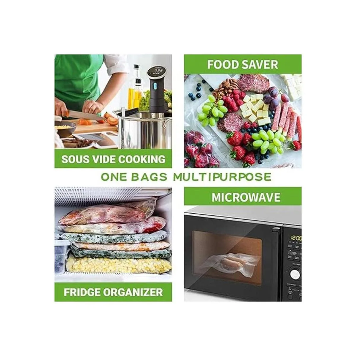 Bolsas versátiles para vacío: estos rollos de ahorro de alimentos son aptos para microondas, hervir, sousvide, lavavajillas y congelador. Perfecto para guardar carne, aves de corral, pescado, verduras, frutas y otros artículos, como joyas, documentos, libros, etc. Ideal para cocinar al vacío por su capacidad de resistir el frío y el calor extremos.