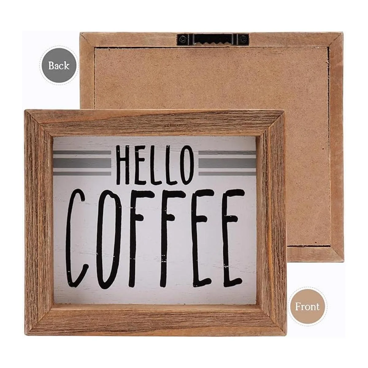 Incluye un bonito letrero de granja: este bonito cartel es un complemento perfecto para tu estación de café. Cuenta con un bloque de madera con un marco marrón oscuro y un fondo blanco pintado con pequeñas rayas grises en la parte superior. Colócalo en tu hogar u oficina, puede ser una vista llamativa. Este letrero de café mide 5.8 pulgadas de ancho x 1.2 pulgadas de profundidad x 5 pulgadas de alto. Pequeño y lindo. Tamaño compacto perfecto para exhibir en un escritorio, estante o pared.