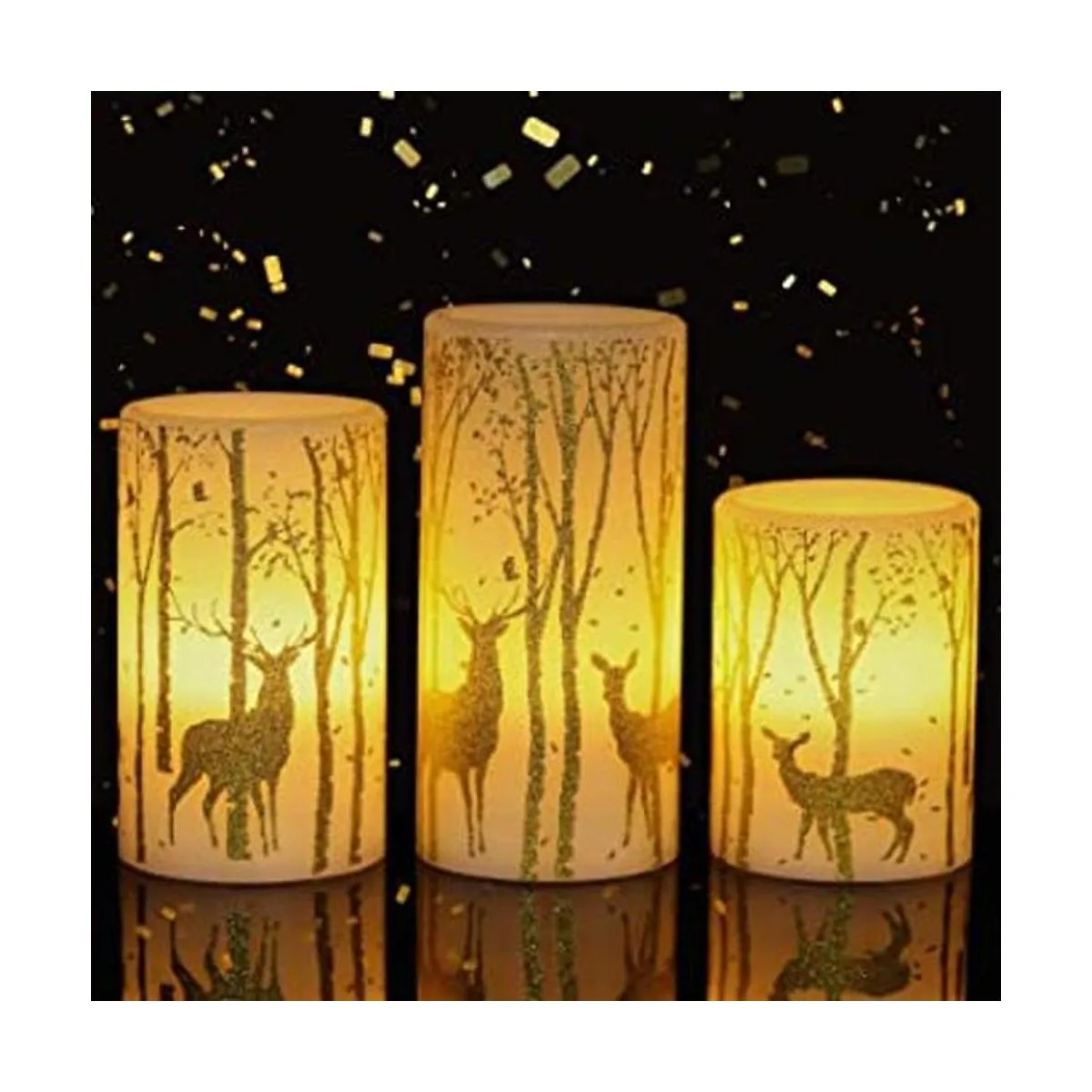 GenSwin Velas sin llama que funcionan con pilas parpadean con temporizador de 6 horas, velas LED de pilar, calcomanía de ciervo, luz cálida, paquete de 3 unidades de cera real para decoración del hogar de Navidad