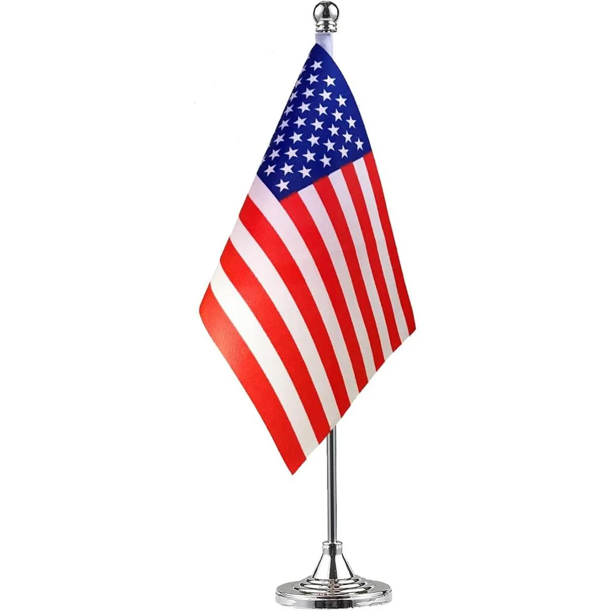 Material: la superficie de la bandera está hecha de poliéster duradero, palo de metal plateado, base de ante antideslizante.