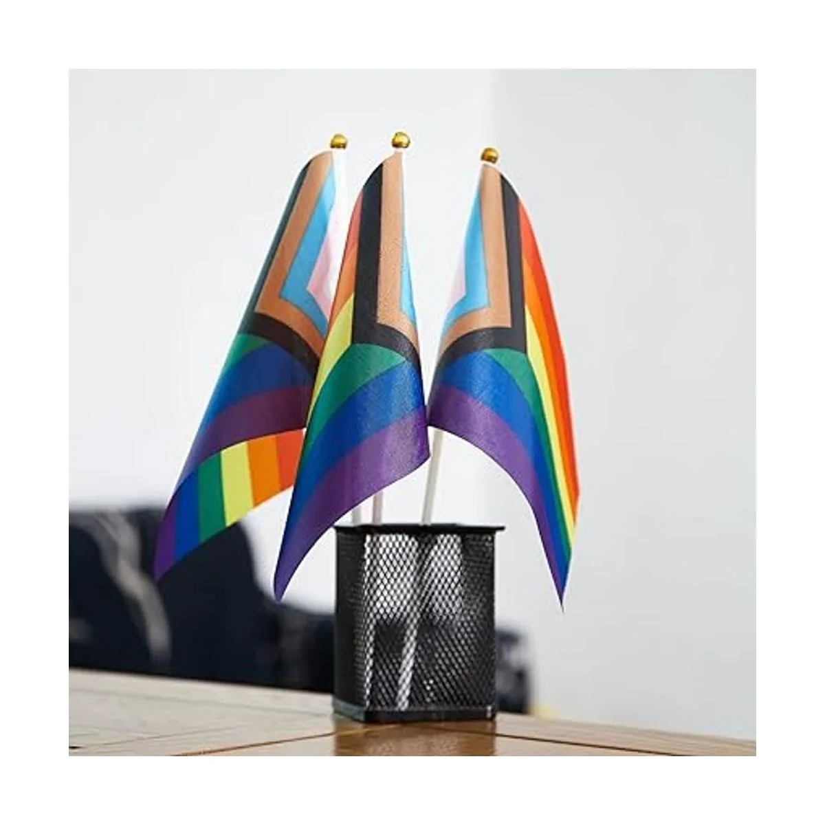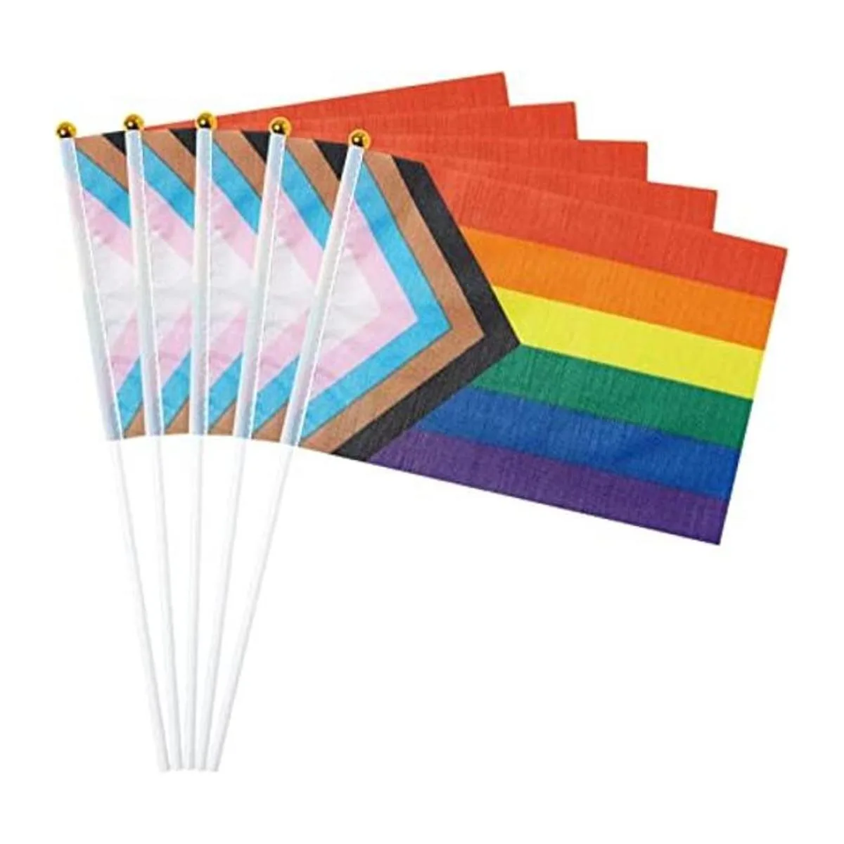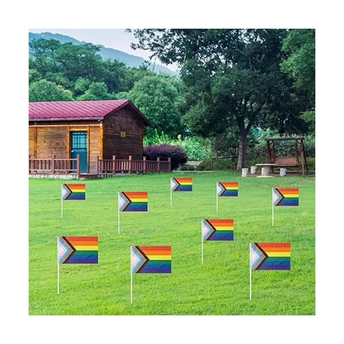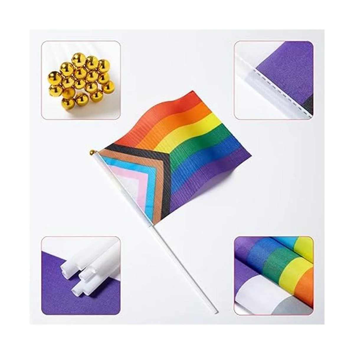 Orgullosa decoración de arco iris: además de la fiesta temática navideña, estas banderas de palo también son ideales para desfiles, fiestas, decoraciones de mesa, también puedes poner banderas en el patio trasero, escuela, club deportivo, jardín, campo de golf, parque infantil, macetas, oficina, familia, sala de conferencias, etc.