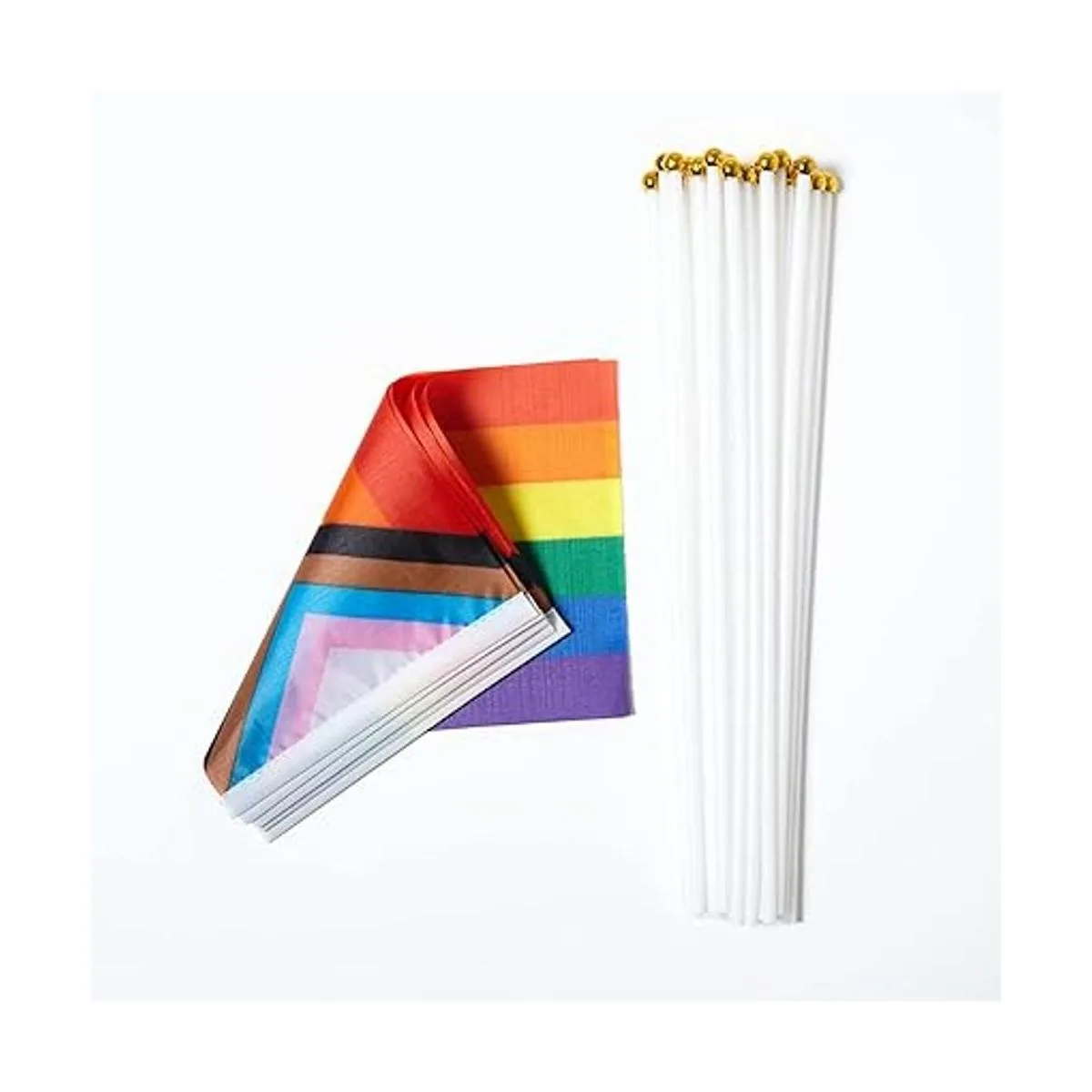 GentleGirl Paquete de 12 banderas de arco iris, diseño de arco iris, pequeñas banderas de mano, diseño de arco iris, para fiestas y desfiles