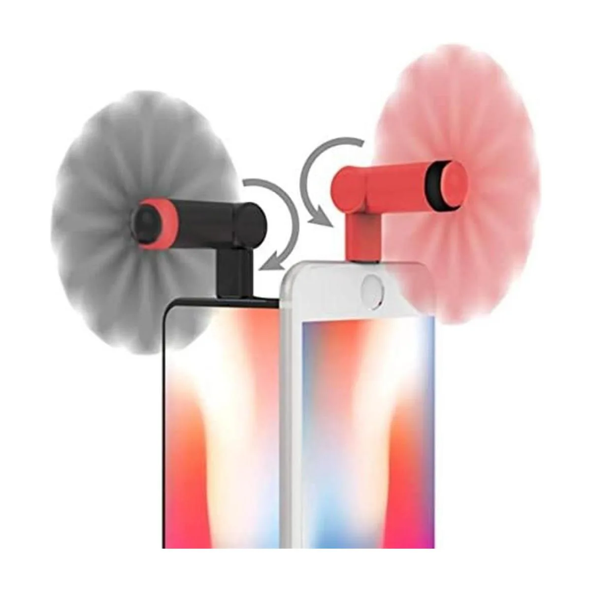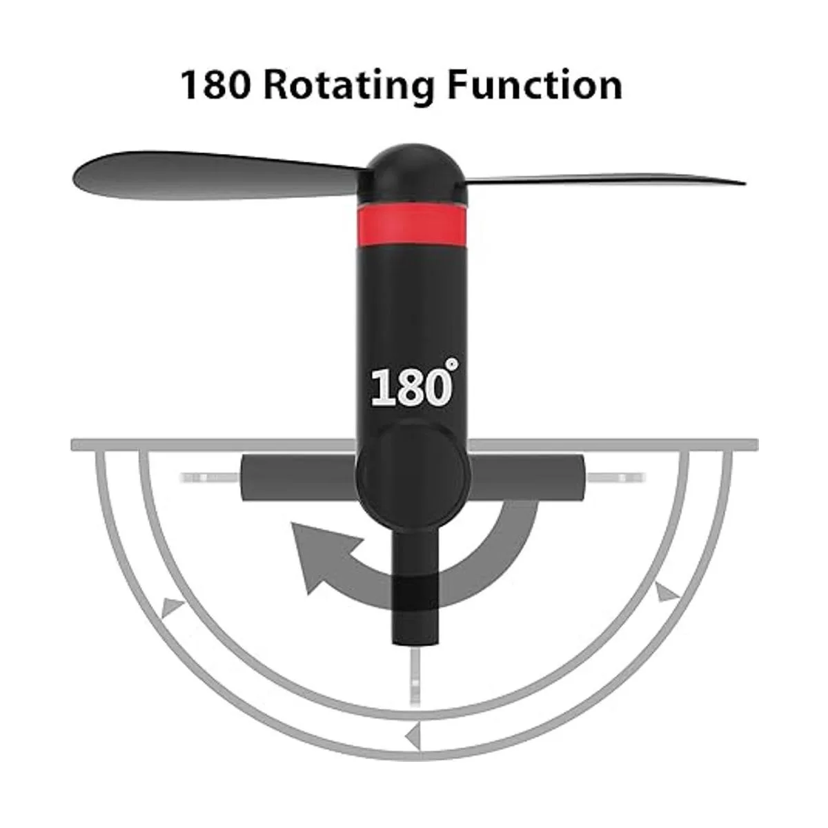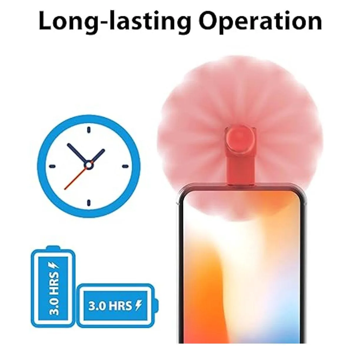 Genuie Ventilador para iPhone 2 paquetes, mini ventilador con rotación de 180, viento fuerte, ligero compatible con iPhone, iPad, iPod y cualquier dispositivo de iluminación. Versión mejorada negro y rojo rosa