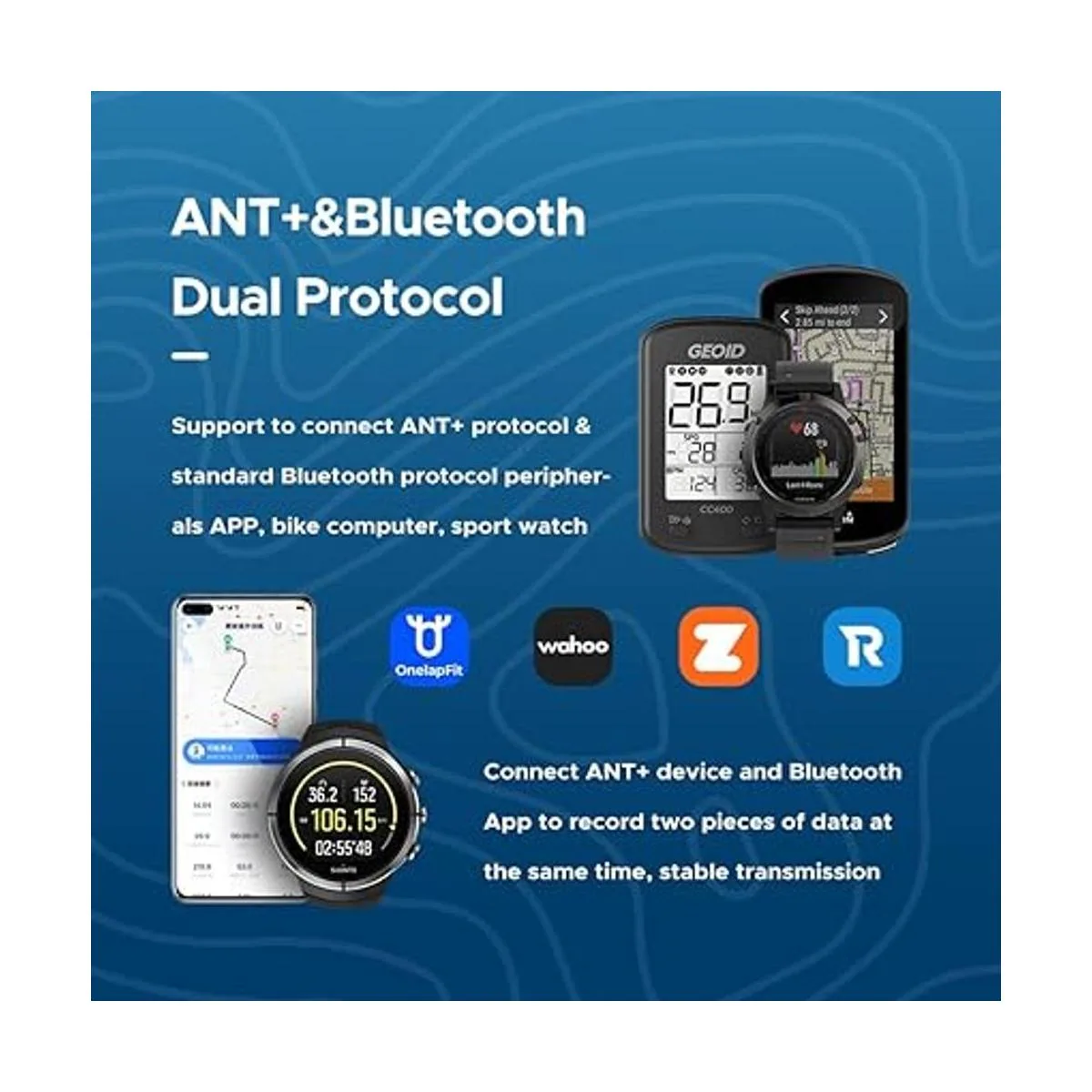 Geoid El sensor CS600 se puede conectar al reloj inteligente de computadora de ciclismo ANT y la aplicación, mientras graba múltiples copias de datos y facilita el análisis