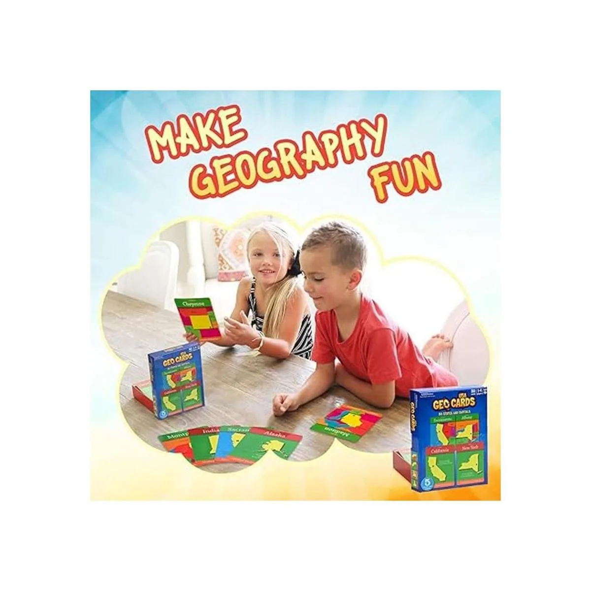 Geotoys GeoCards USA Juegos de cartas geográficas para el hogar, la escuela y los viajes Recursos de aprendizaje y juguetes educativos, tarjetas flash Juguetes para niños para niños a partir de 4 años