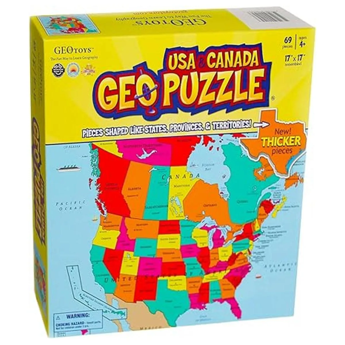 GeoToys GeoPuzzle USA y Canadá Juguetes educativos para niños y niñas, rompecabezas de geografía de 69 piezas, rompecabezas de tamaño jumbo para niños, a partir de 4 años