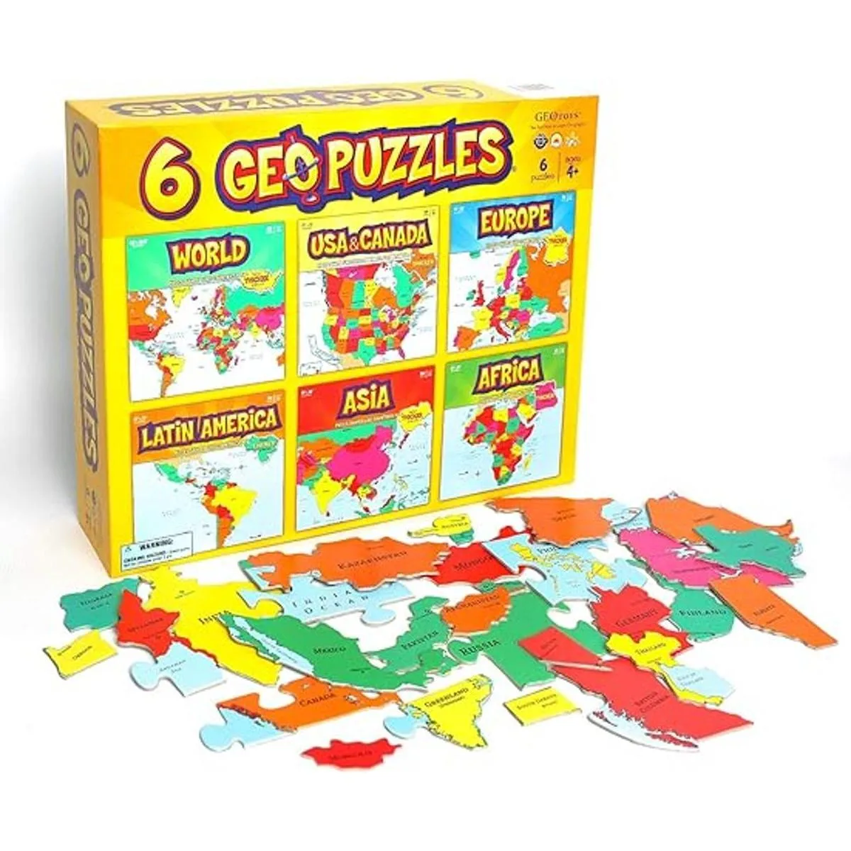 GeoToys Juego de 6 georompecabezas en una caja, juguetes educativos para niños y niñas, rompecabezas de geografía de más de 50 piezas, rompecabezas de tamaño jumbo para niños, a partir de 4 años