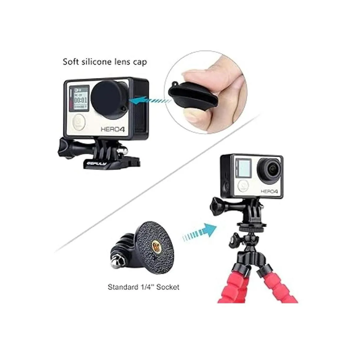 Incluye tapa de lente y adaptador de trípode: la tapa de silicona es muy útil para proteger la lente de la cámara GoPro de la suciedad, el polvo y los arañazos. El adaptador de trípode se utiliza para conectar la carcasa del marco con trípodes y monopiés.