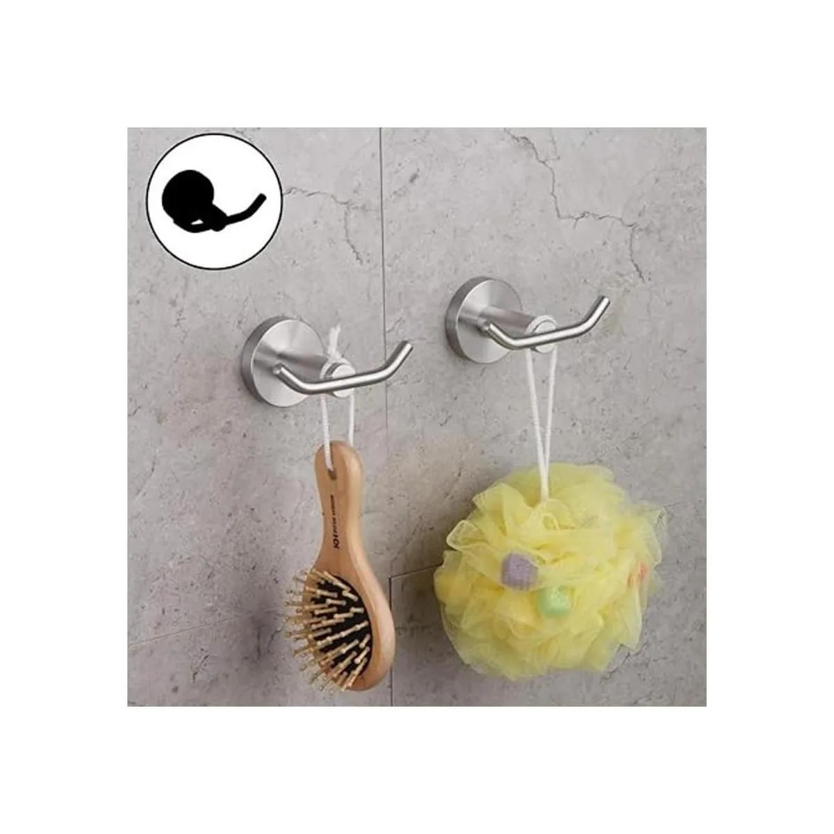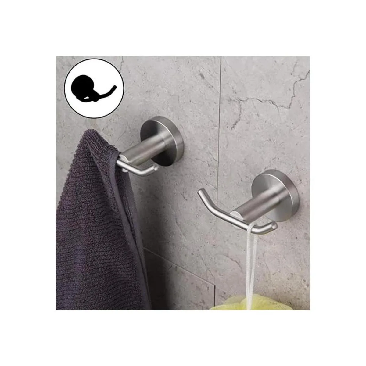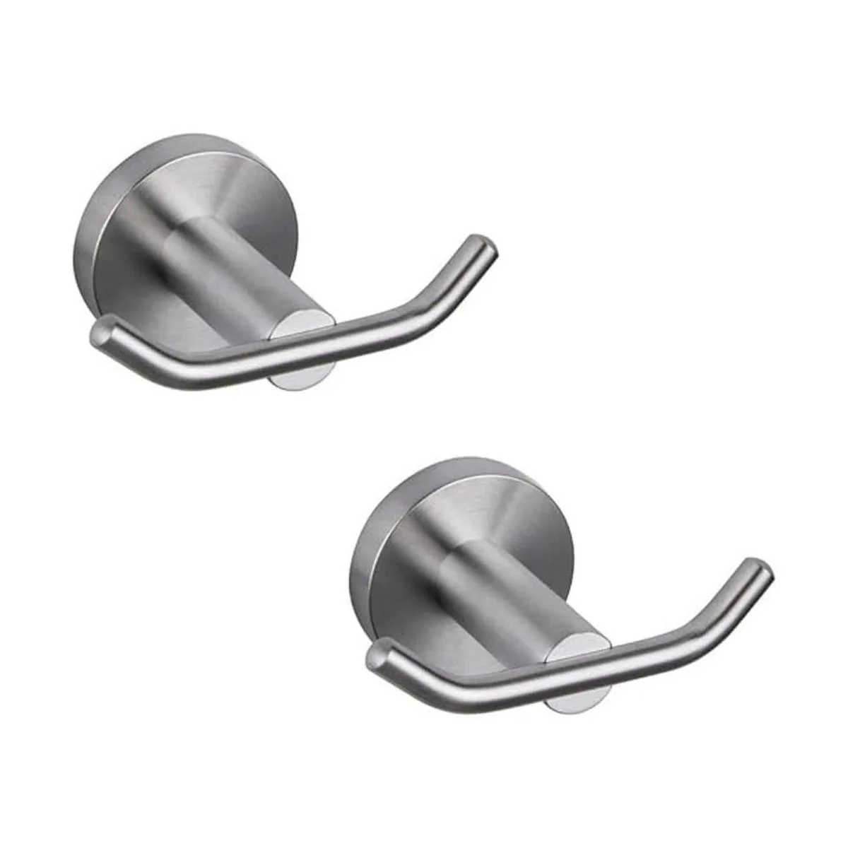 GERZ Gancho doble para toalla de baño, acero inoxidable 304, gancho para ropa para baño, cocina, estilo moderno hotel, montado en la pared, paquete de 2 unidades, acabado cepillado