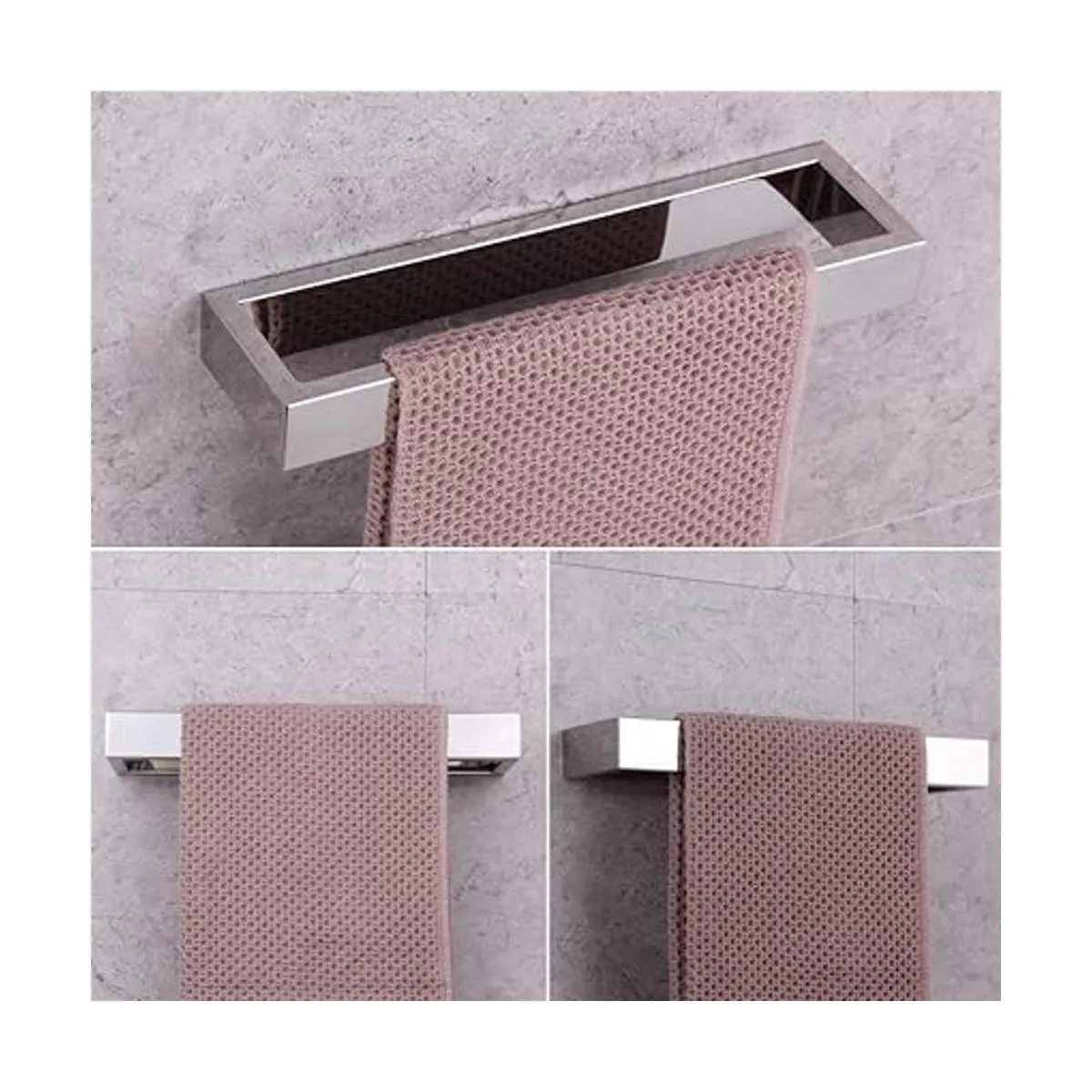 Incluye anillos para toallas, soporte para papel higiénico.