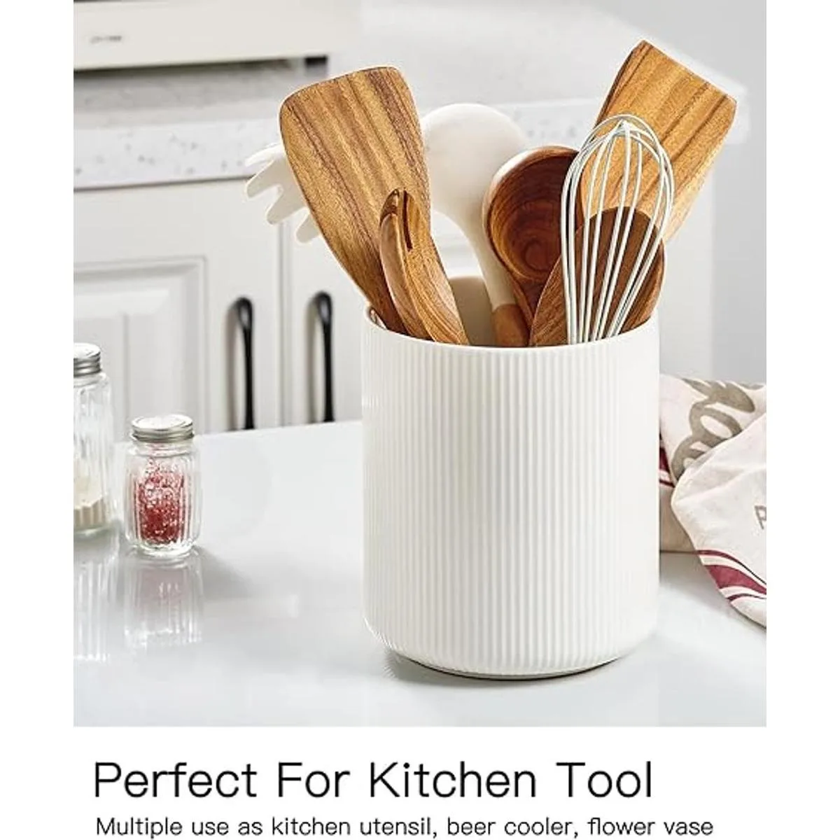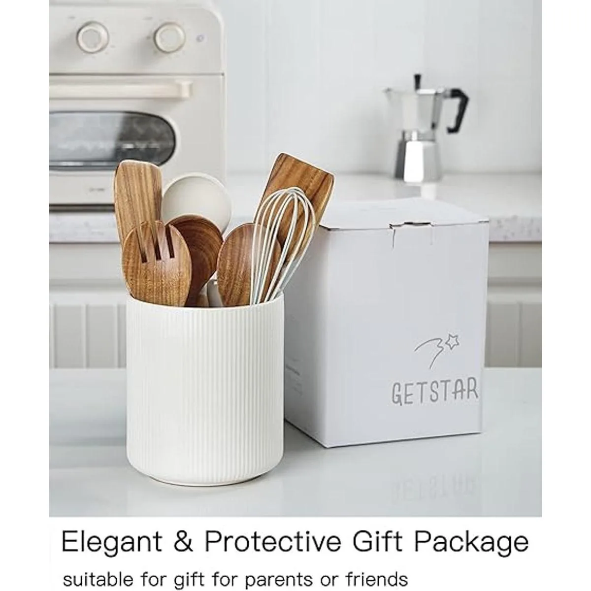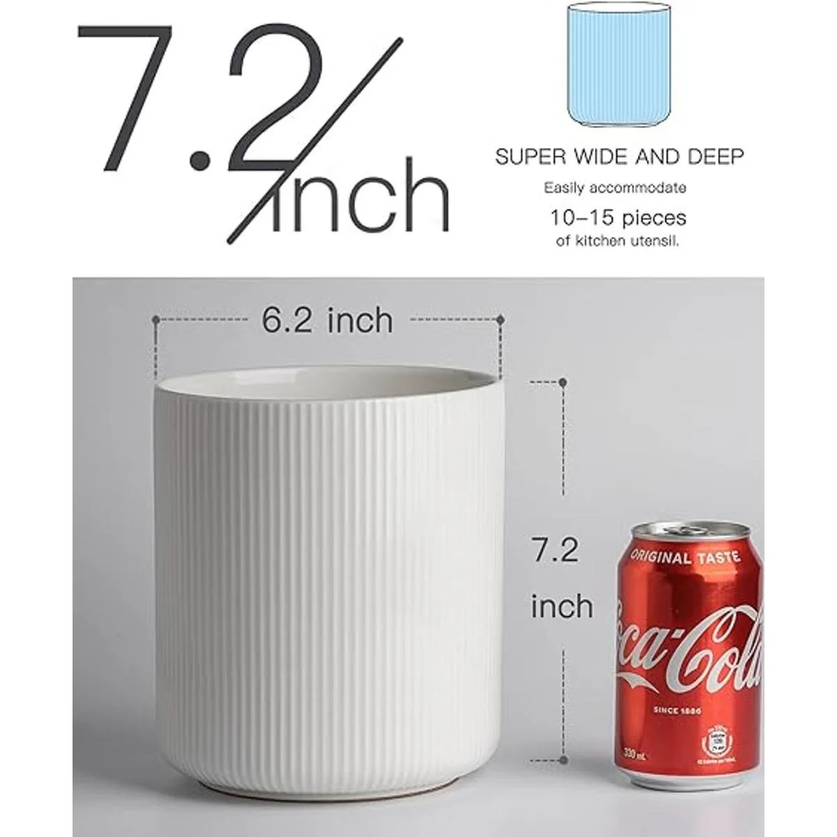 Getstar Soporte para utensilios, soporte grande para utensilios de cocina para encimera de cocina H7.2 pulgadas de ancho x 6.2 pulgadas, soporte de utensilios de cocina de cerámica con tapete de corcho, decoración de cocina para encimera blanco, utensilios no incluidos