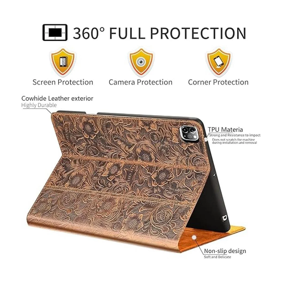 Piel auténtica de alta calidad: las fundas de piel para iPad GEXMIL están hechas de piel de vaca auténtica de capa superior. Estas pieles son seleccionadas por calidad, fuerza, carácter y grano. Se ven elegantes y se sienten naturales y suaves, garantizando un uso a largo plazo. Forro interior de súper fibra, protege la pantalla de daños, carcasa interior suave de TPU, protección completa del iPad, duradero para la lucha libre.