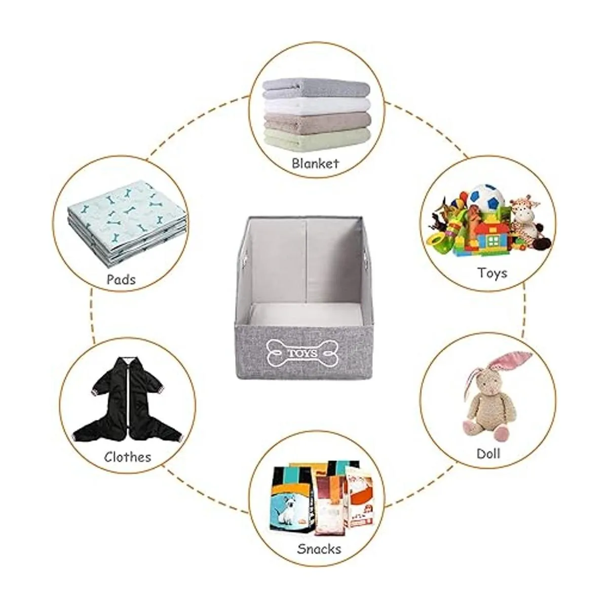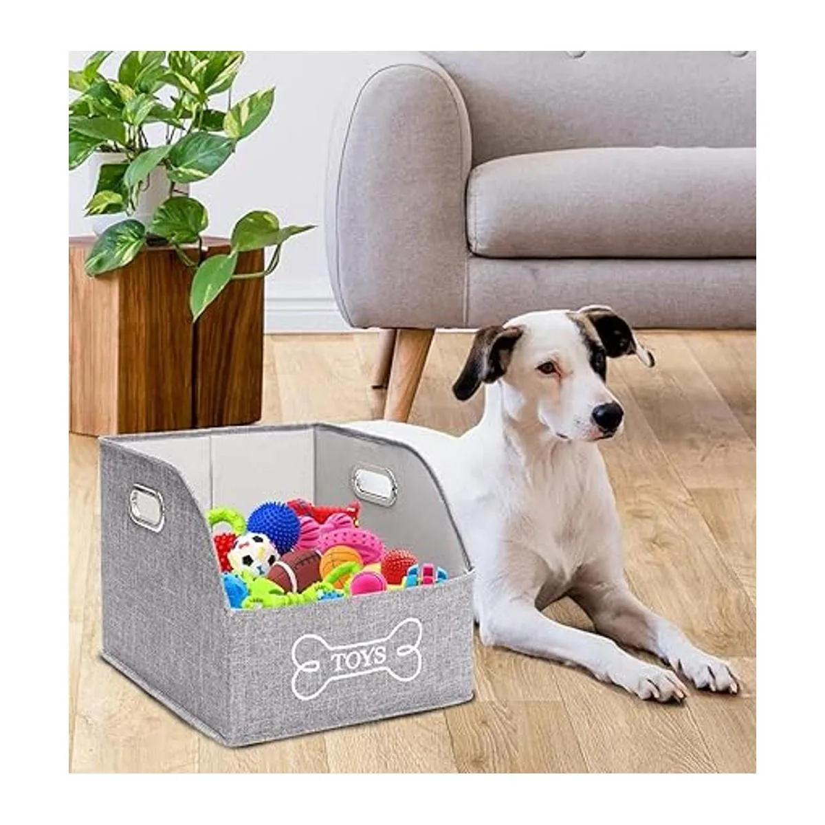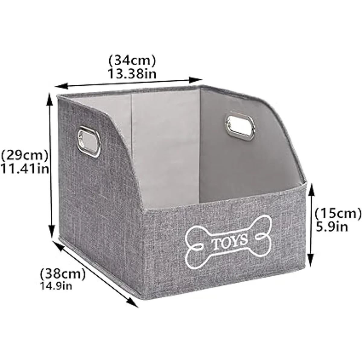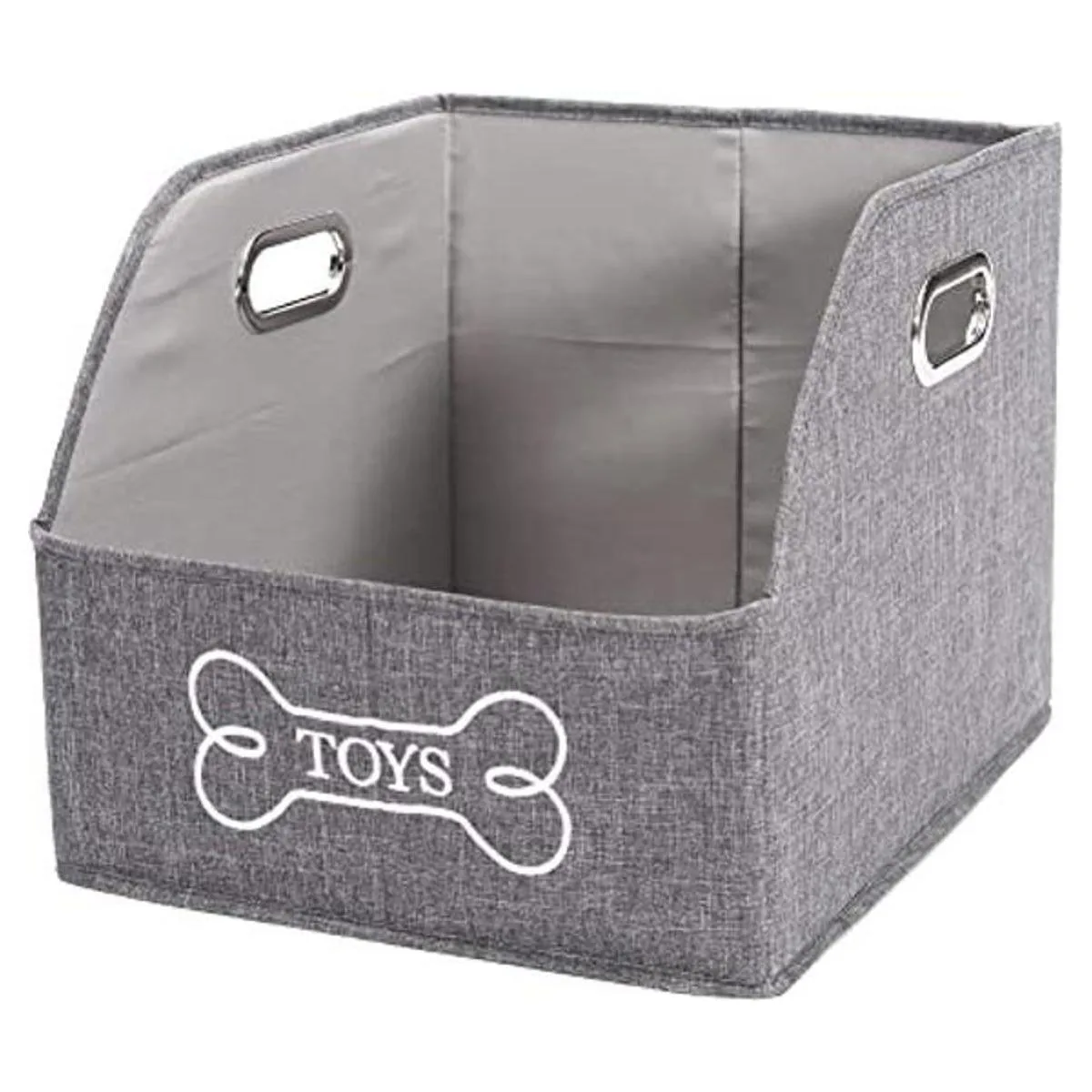 4. El almacenamiento de juguetes para perros funciona bien porque la caja es ancha y poco profunda, al perro le gusta recoger y rebuscar para encontrar el juguete que quiere, por lo que este producto es bueno para eso. La cesta de almacenamiento se mantiene en posición vertical y las prácticas asas hacen que sea fácil de transportar o mover cuando sea necesario.
