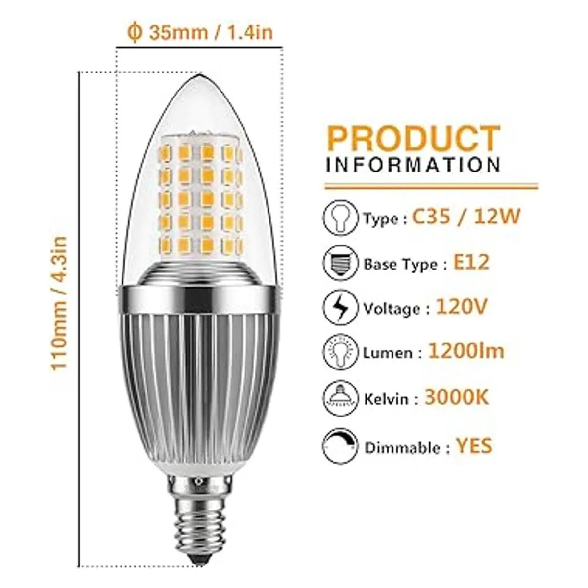 GEZEE Bombilla LED para candelabro, no regulable, equivalente a 100 vatios, bombillas LED de 12 W, blanco cálido de 3000 K, 120 V, 1200 lúmenes, base E12, bombillas de candelabro, forma de torpedo paquete de 4