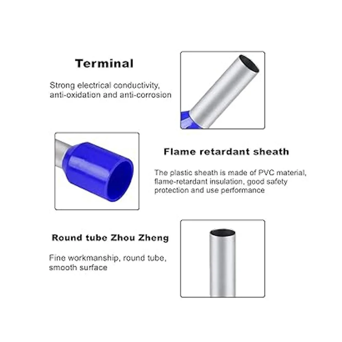 Seguro: la virola tiene un collar de plástico que mejora la seguridad y este kit de conectores de virola está diseñado con aislamiento llamarada, lo que hace que la inserción del alambre sea más fácil y elimina los hilos sueltos de alambre, y evita que los extremos del alambre se deshilachen o se rompan.