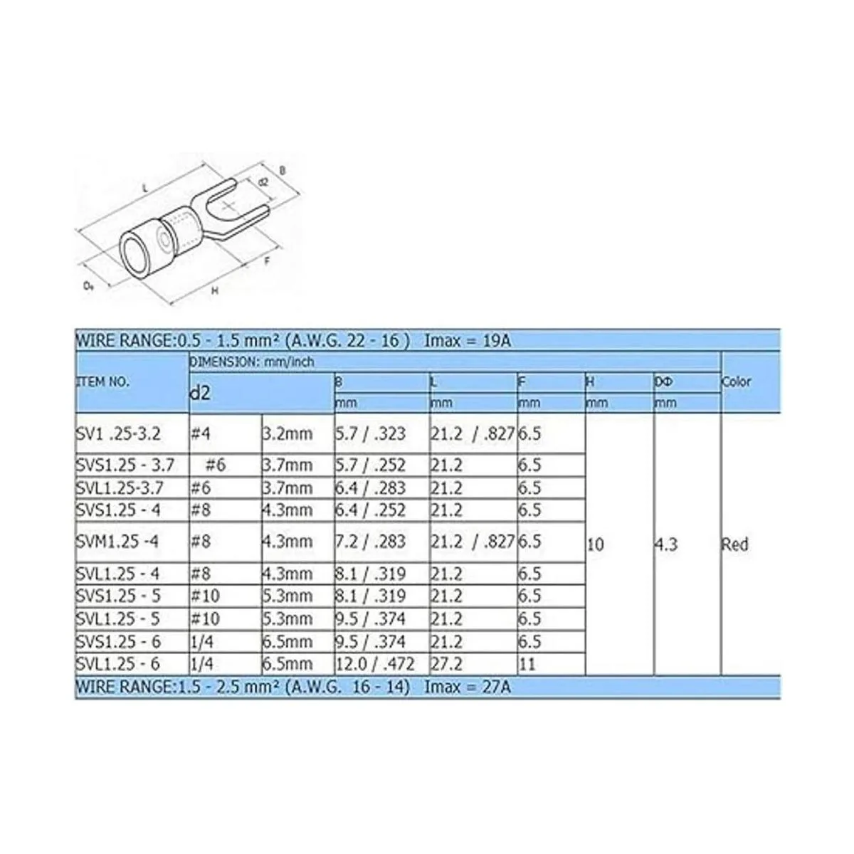 Contenido del paquete: 100 /2 x terminal de horquilla roja