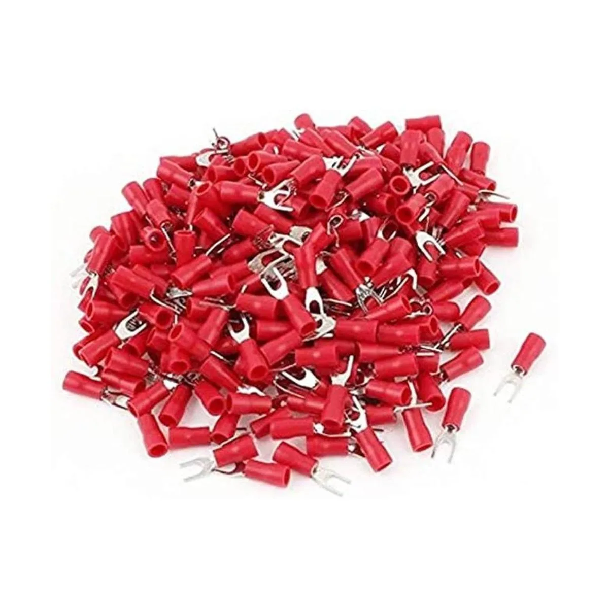 GFORTUN 100 unidades de terminales de espada de horquilla aislados rojos tipo U conector de cable eléctrico de engarzado terminales 2216 AWG SV 1.254S 8