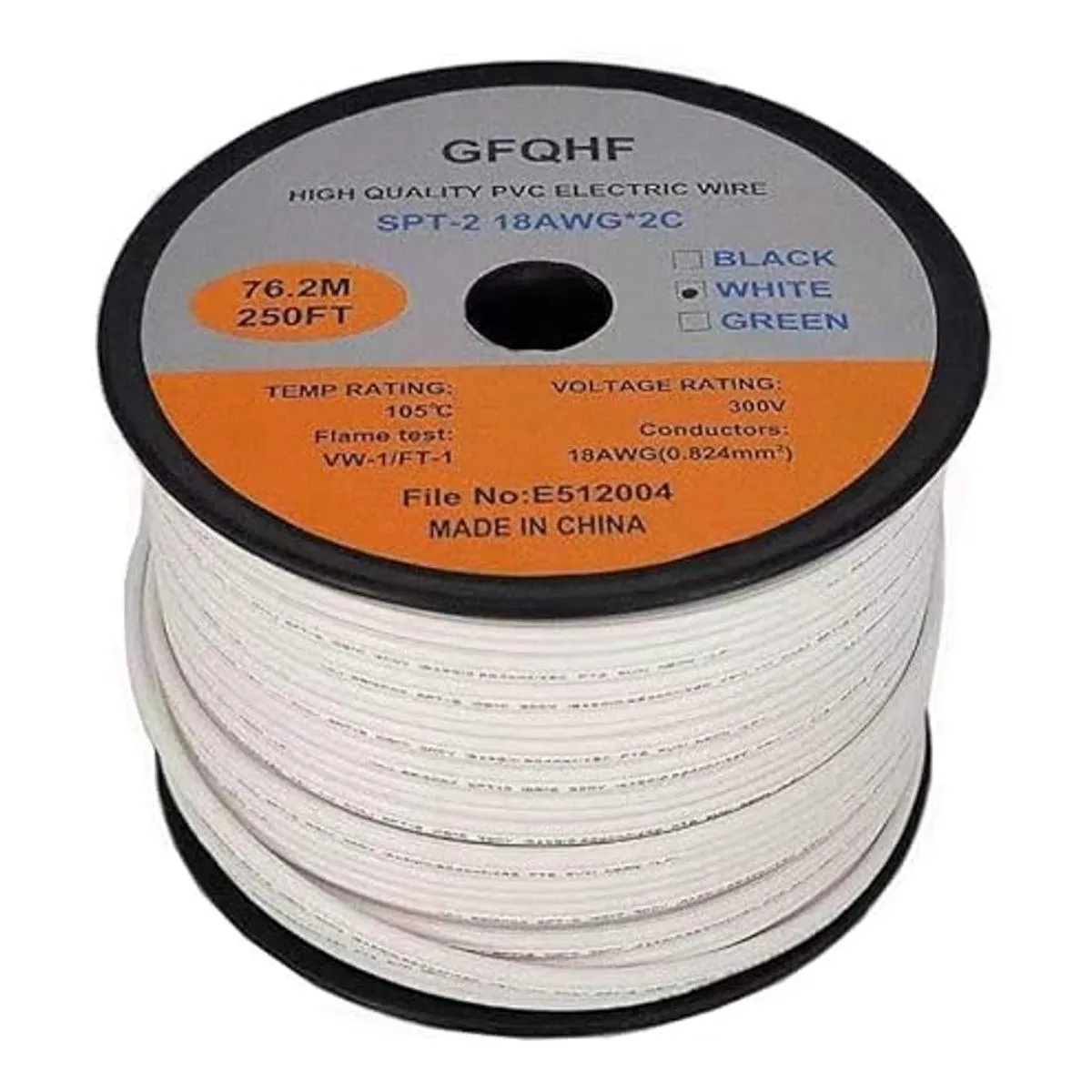 GFQHF Cable de 250 pies con cremallera, calibre 18, SPT2