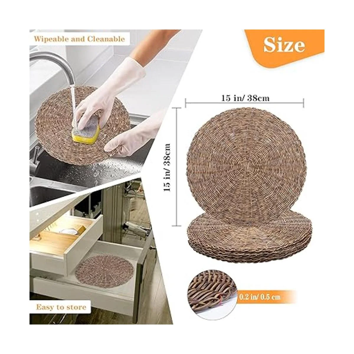 Aislamiento térmico y fácil de limpiar: los manteles individuales de 0.2 pulgadas de grosor para mesa de comedor son resistentes al calor, por lo que puedes poner alimentos al vapor en ella con total confianza. Los manteles de tejido de cuerda protegerán tu encimera de quemaduras. Las alfombrillas tejidas naturales lavables y lavables son fáciles de limpiar. Puedes limpiar el mantel trenzado con un paño húmedo o enjuagarlo con agua, pero deben secarse al aire a tiempo y almacenarse en un lugar seco.