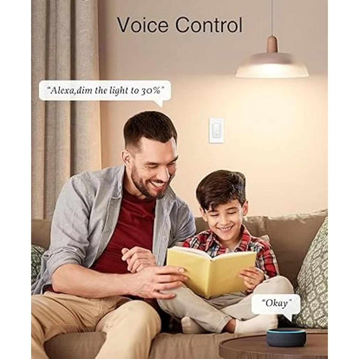 Inicia Smart HomeAlexa regulador de intensidad reemplaza perfectamente tu viejo interruptor de luz de pared. Haz que tu hogar sea inteligente con el interruptor inteligente. Hacemos todo lo posible para ganar la satisfacción de los clientes. La respuesta en línea de 7 x 24 horas y la comunicación eficaz es lo que te prometió. Nota: Cuando el interruptor actualizado está apagado, está diseñado sin luz LED, puedes controlarlo por voz y aplicaciones de vida inteligente en el smartphone.
