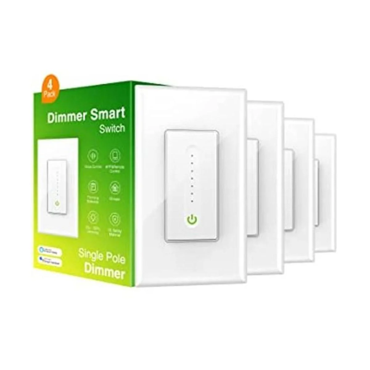 GHome Interruptor de atenuación inteligente que funciona con Alexa Google Home, interruptor WiFi de un solo polo de 2.4 GHz para bombillas LED regulables CFL INC, requiere cable neutro, certificado UL, no requiere concentrador, paquete de 4