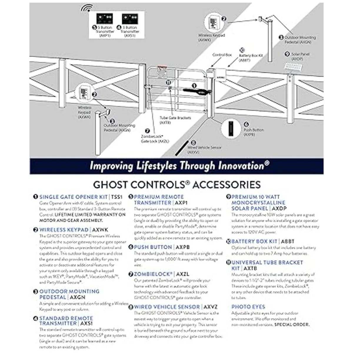 Ghost Controls Transmisor remoto de 3 botones para abridores automáticos de puertas, modelo AXS1