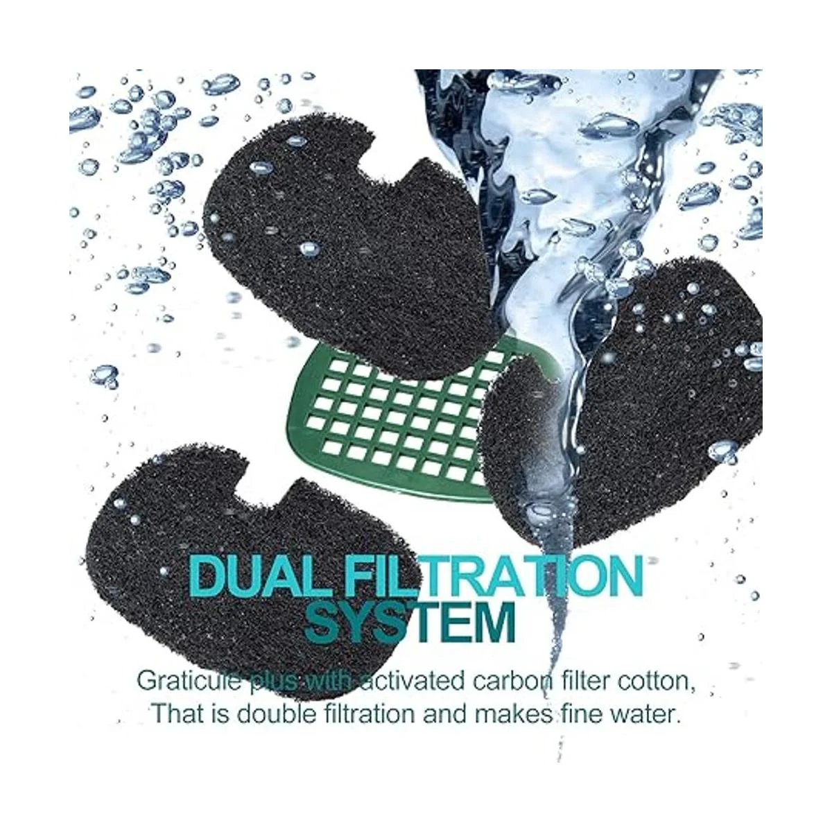 Sistema de doble filtro: nuestro cuenco de agua para reptiles está especialmente diseñado con doble filtración profunda: filtro de carbón activado de algodón y tablero a cuadros de polipropileno, que ayuda a proporcionar un agua limpia y suave de alta calidad.