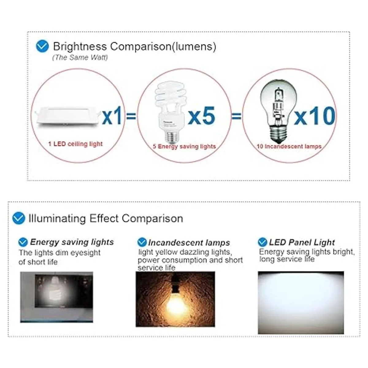 Menos consumo, los accesorios de techo empotrados de 18 vatios soportan un brillo de 1620 lm, ahorran el 90 de la energía en comparación con las luces de techo CFL, incandescentes y halógenas. Equivalente a una lámpara incandescente de 150 W, ahorra muchas facturas de electricidad al año.