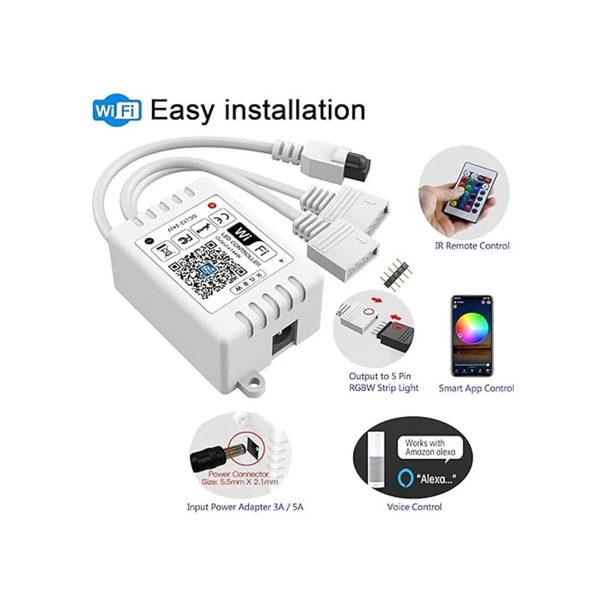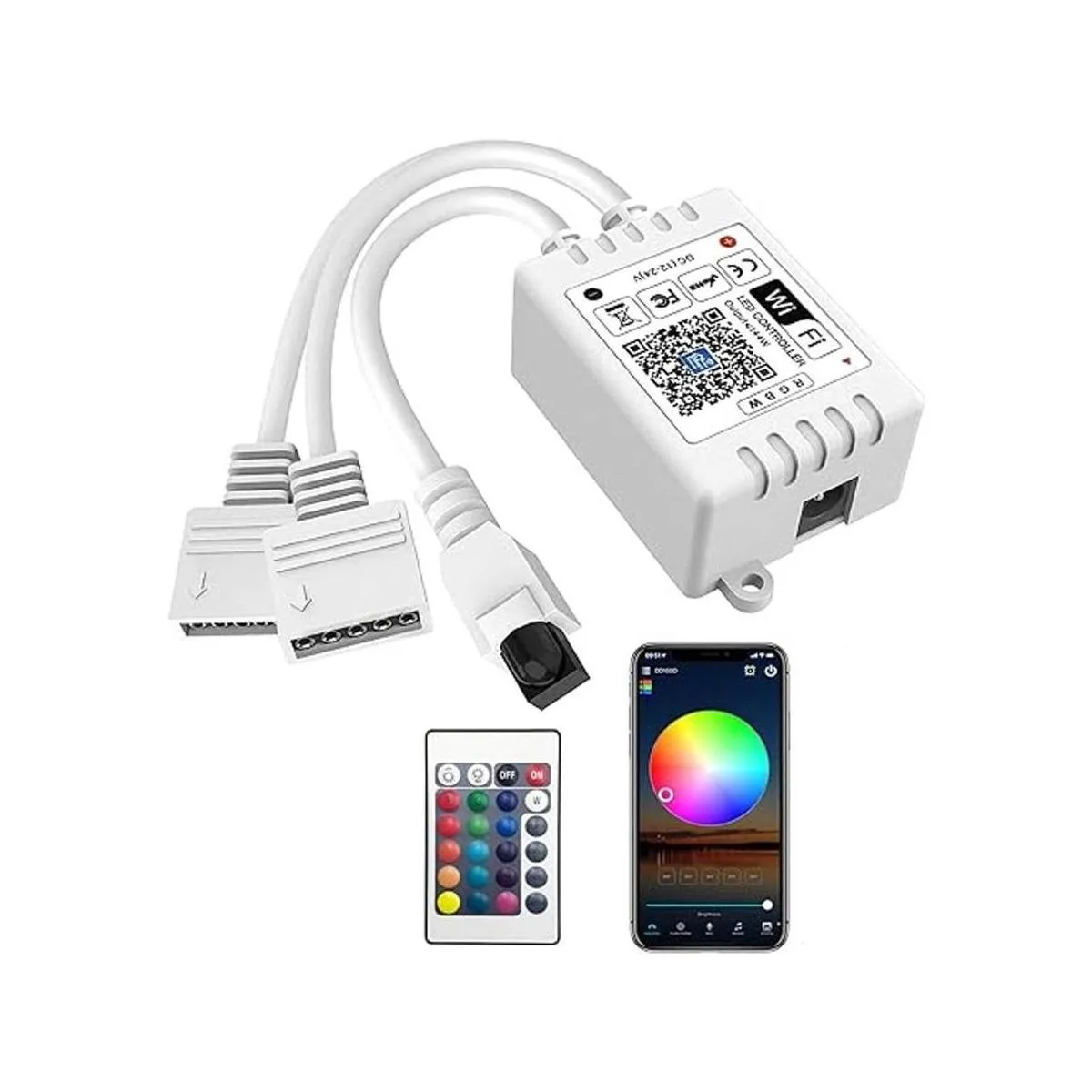 GIDEALED Controlador inteligente WiFi RGBW LED de 2 salidas, 5 pines con control remoto de 24 teclas, compatible con Alexa y Google Assistant, tira de luces de control de vozaplicación para sistema AndroidiOS solo controlador LED WiFi