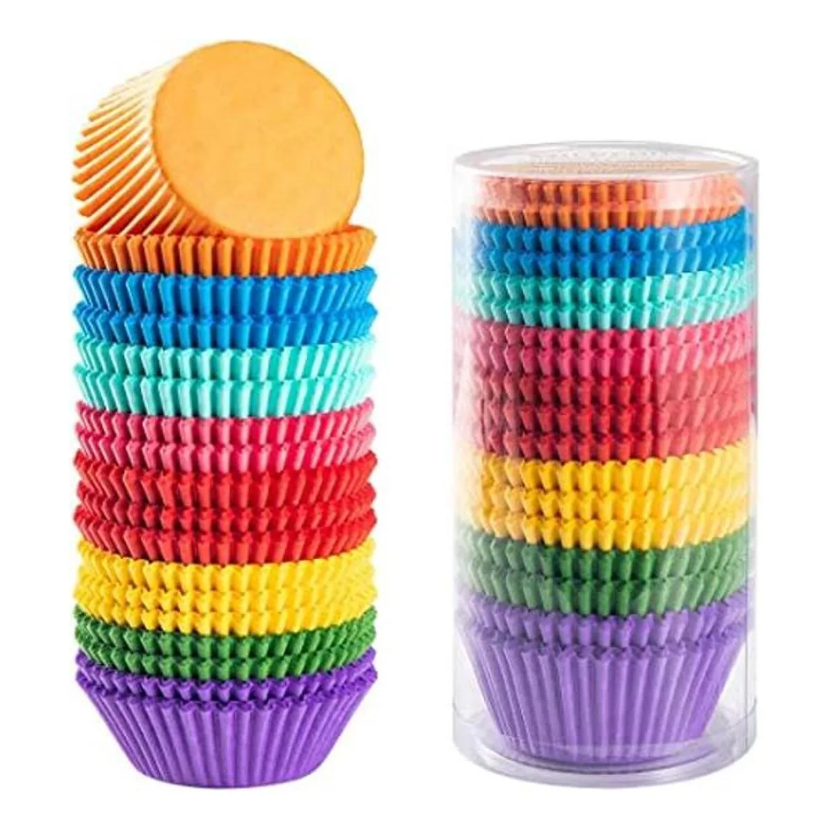 Viste un lote de cupcakes o magdalenas con estos divertidos forros estándar de arco iris, incluye 400 forros de color sólido, 8 colores: rojo, naranja, amarillo, morado, verde, azul Tiffany y rosa