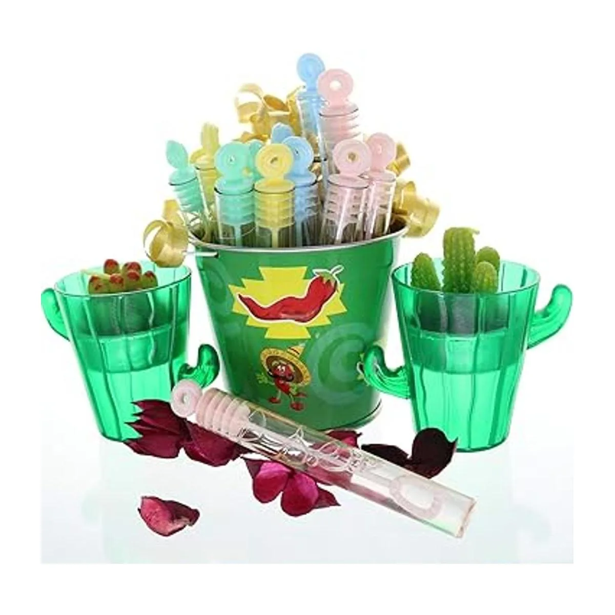 El paquete incluye 48 mini varitas de burbujas en forma de rosa de 4.2 pulgadas con solución de burbujas prellenada.