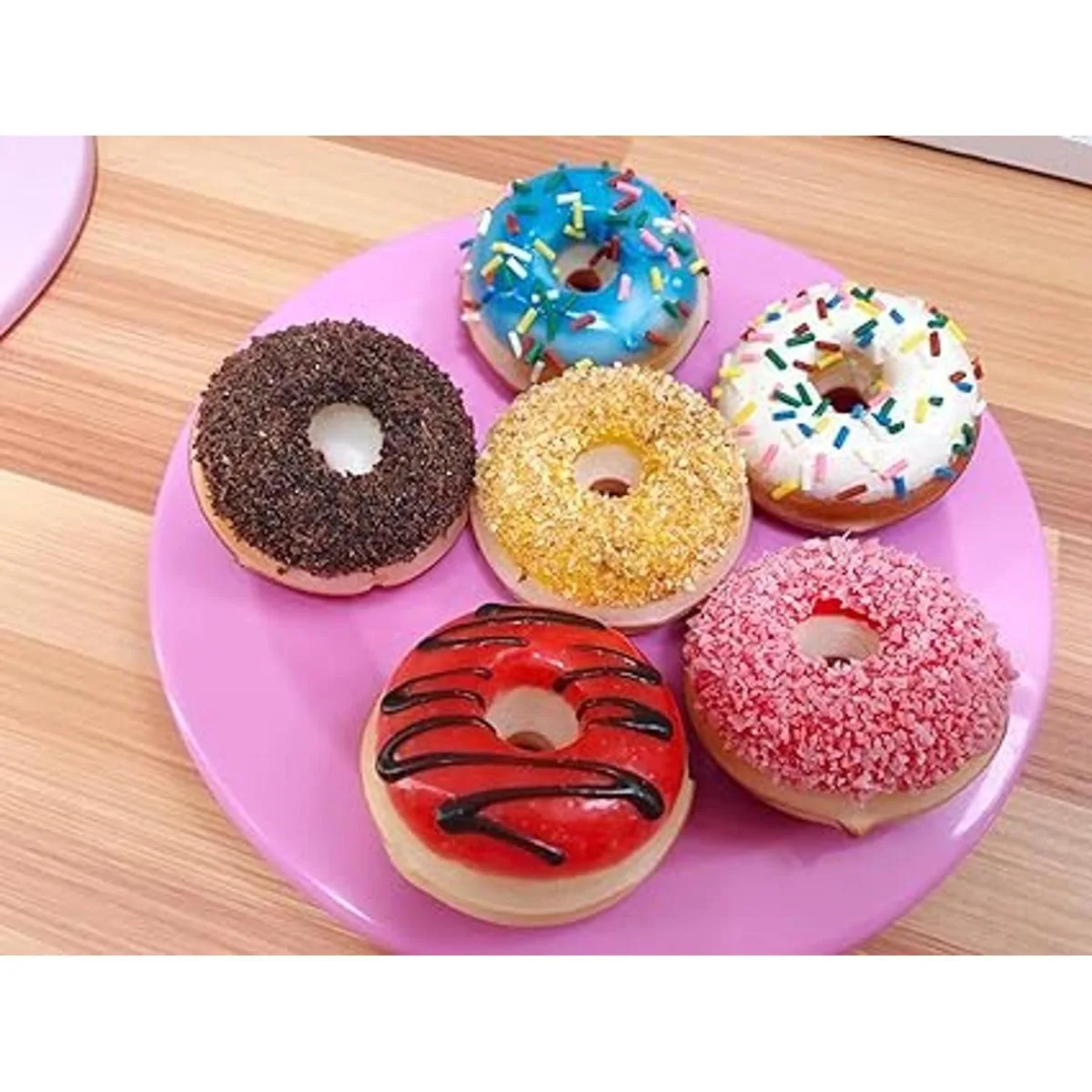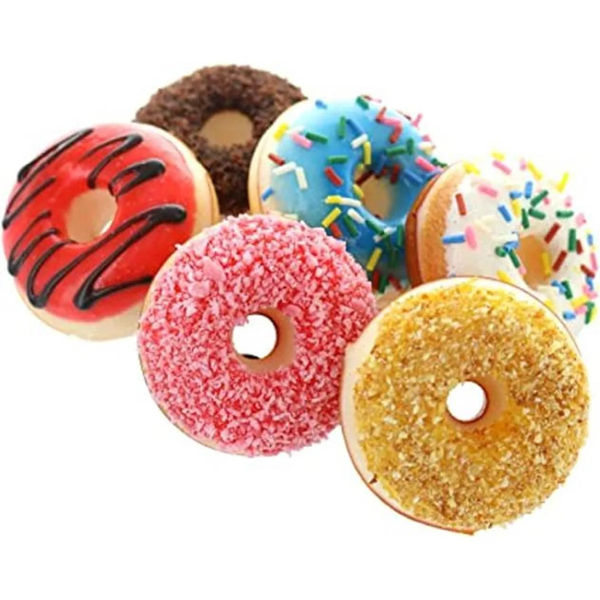 GiftExpress 6 donas de juguete artificiales realistas, donas falsas perfumadas, donas realistas surtidas, juguetes de decoración de postres falsos, juguetes de decoración de fiesta de donghnut, comida de utilería