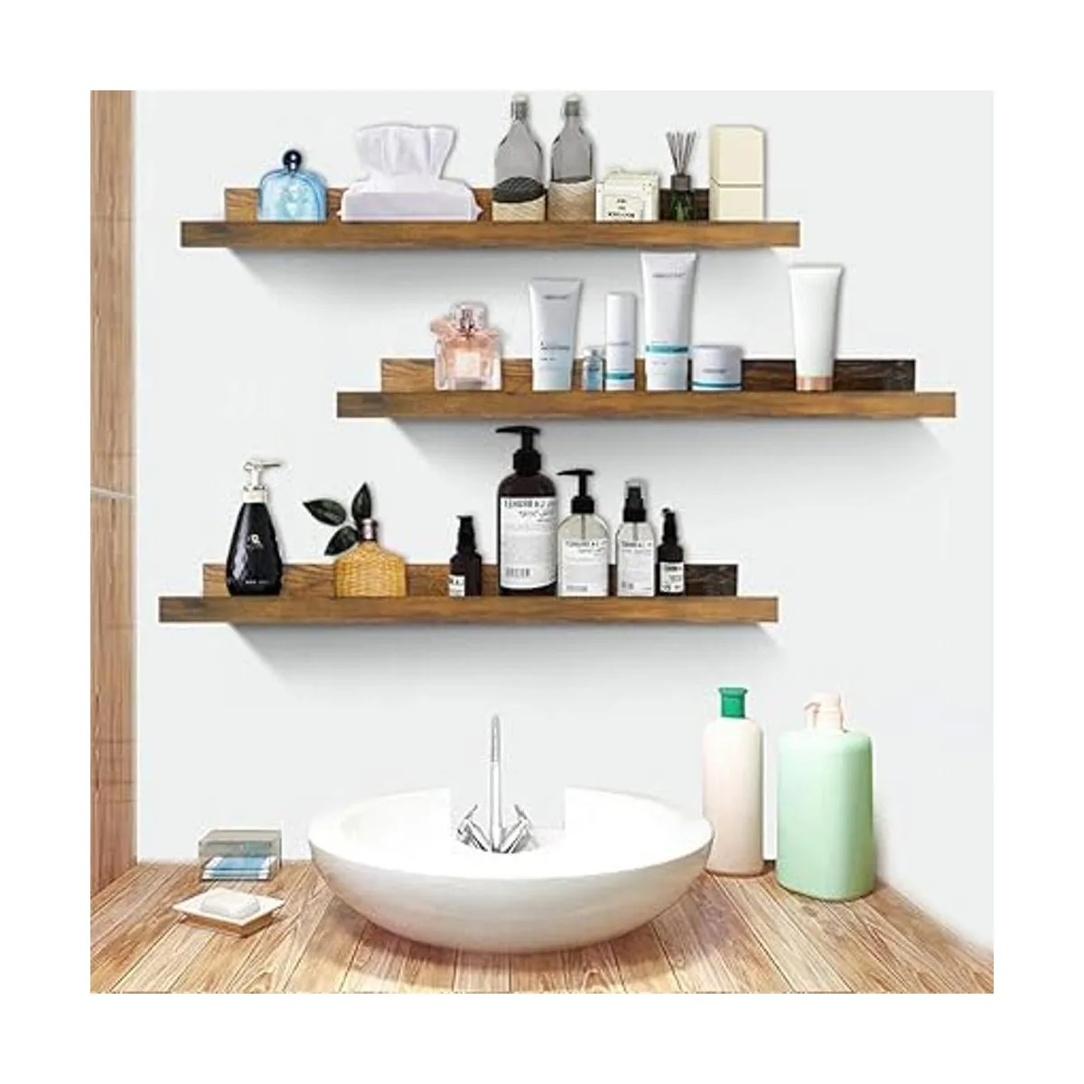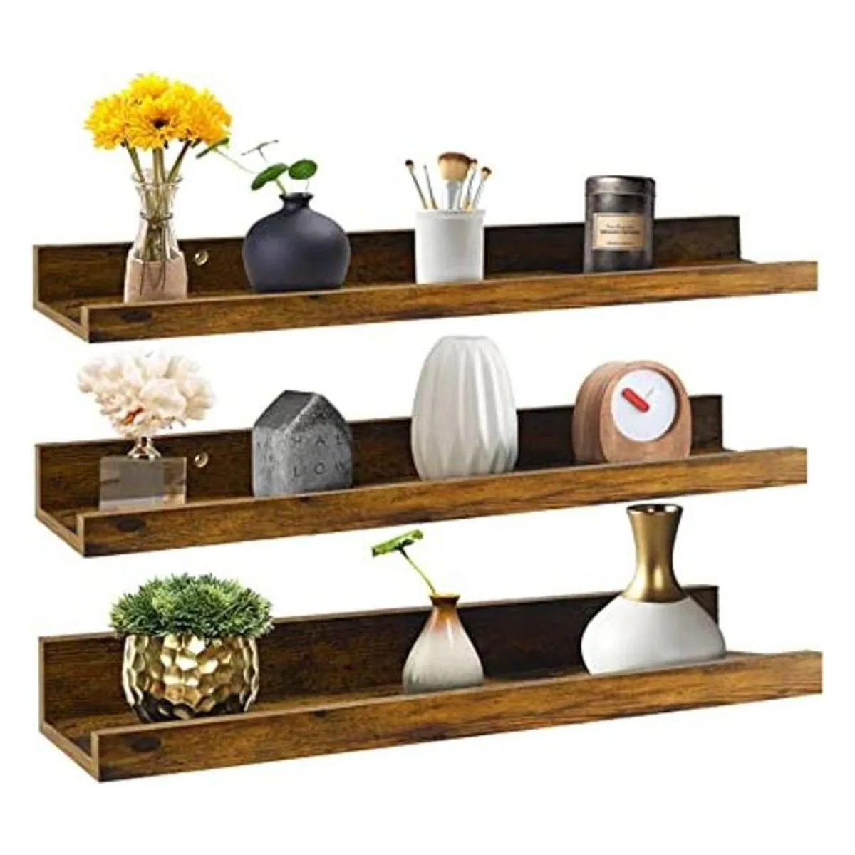 Giftgarden Juego de 3 estantes flotantes de 24 pulgadas para montar en la pared, estantes de pared grandes rústicos, estantes de pared para dormitorio, sala de estar, baño, cocina, 3 tamaños diferentes