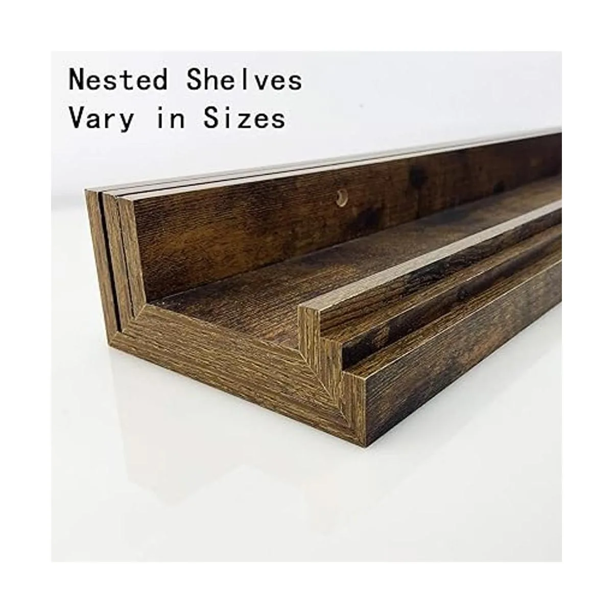 Aspecto clásico y rústico: el clásico diseño de repisa en forma de U y el grano de madera rústico ofrecen a los estantes flotantes de pared con un aspecto simplemente elegante, servirán como un encantador ajuste decorativo para cualquier estilo de diseño de tu habitación.